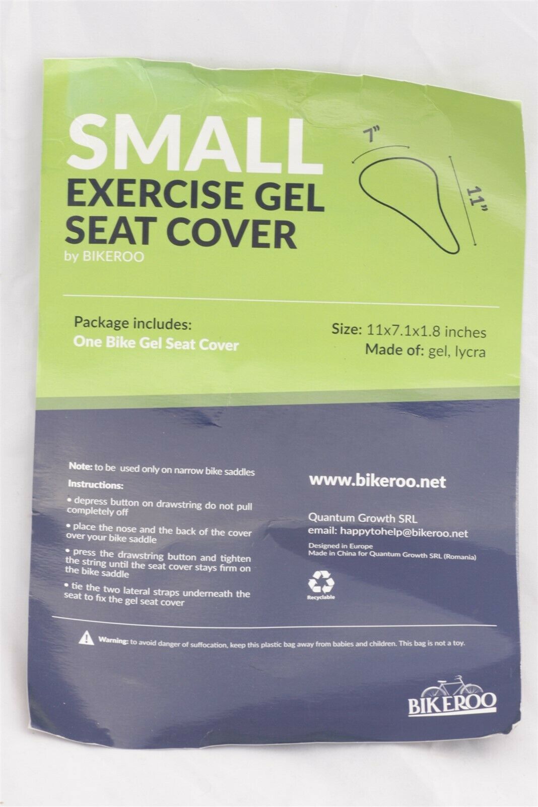 Bikeroo SMALL Exercise Bike Seat COVER Soft GEL Cushion 7 " x 11 "
