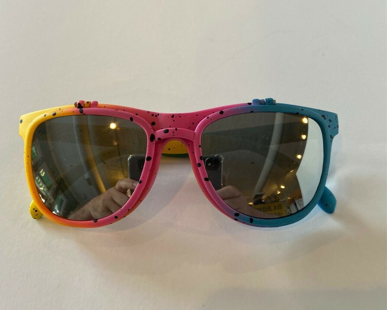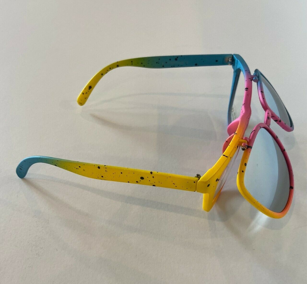 WAYFAIR STYLE GLASSES MULTI-COLOR FLIP FRAME MIRROR LENSES (YEL-PK-BLU)