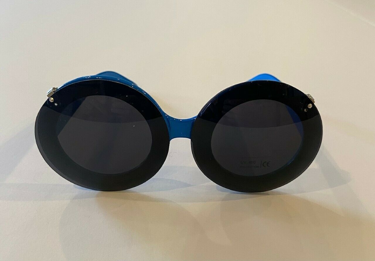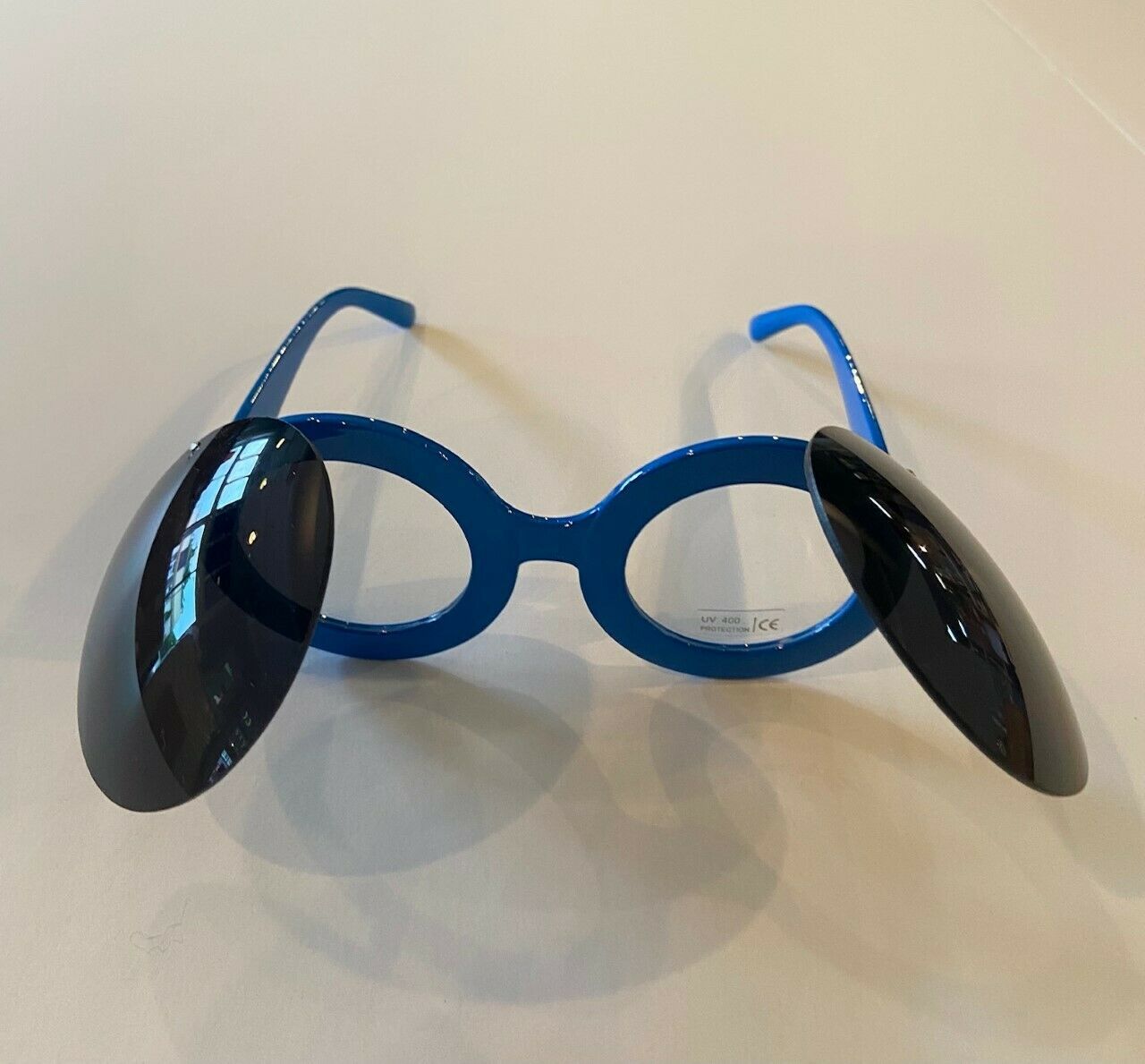 ROUND GLASSES BLUE FRAME ROUND FLIP BLACK LENZES GREAT HALLOWEEN ACCESSORIES