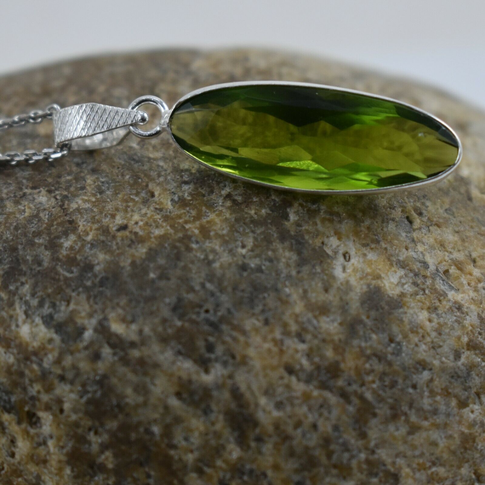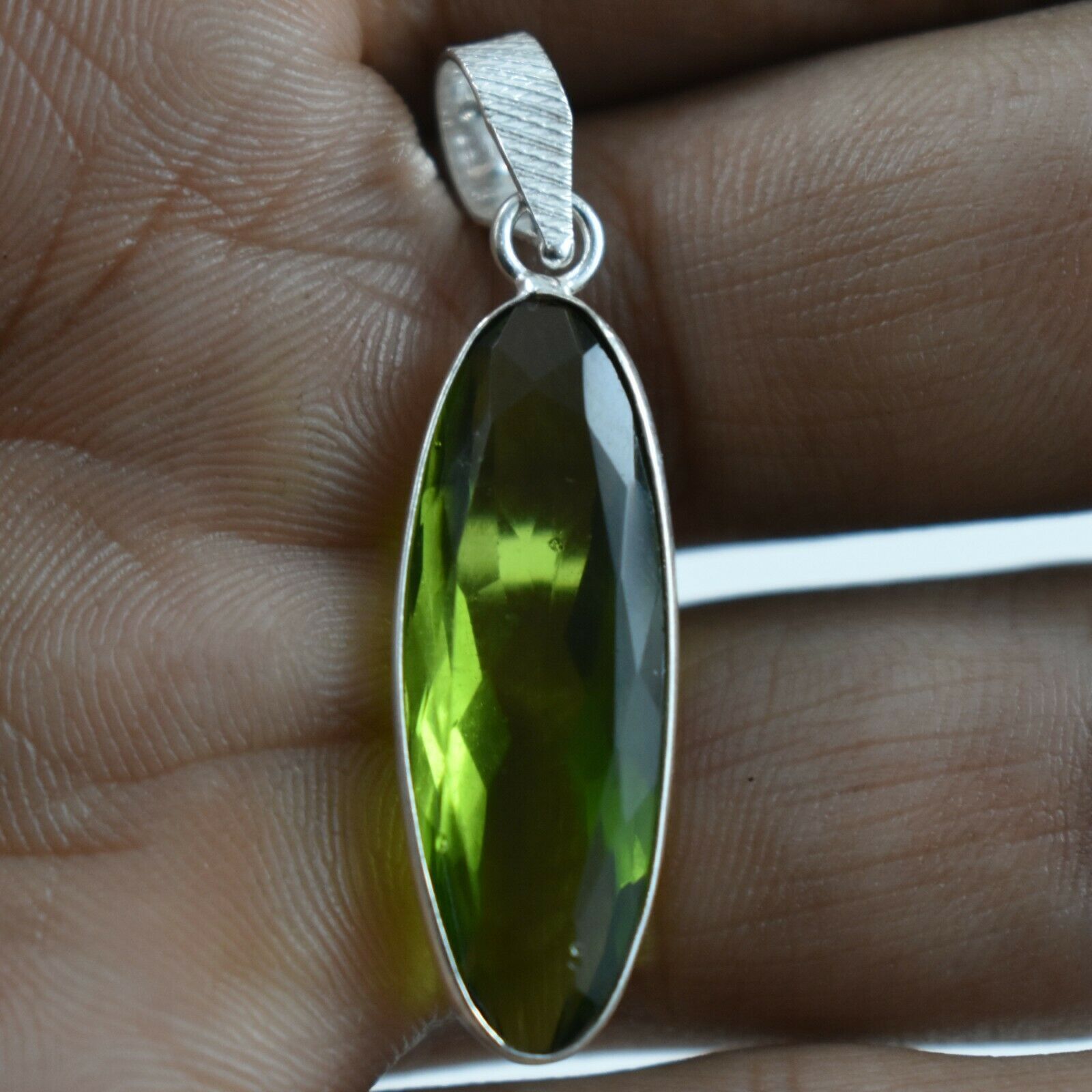 925 Sterling Silver Peridot Gemstone Handmade Pendant Her Party Wear Gift PS2480