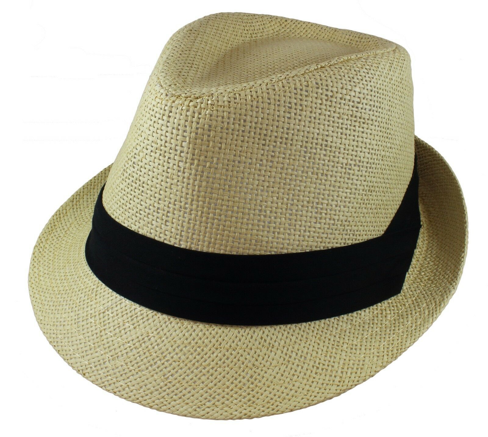 Beige Fedora Panama Straw Hats with Band Unisex Summer