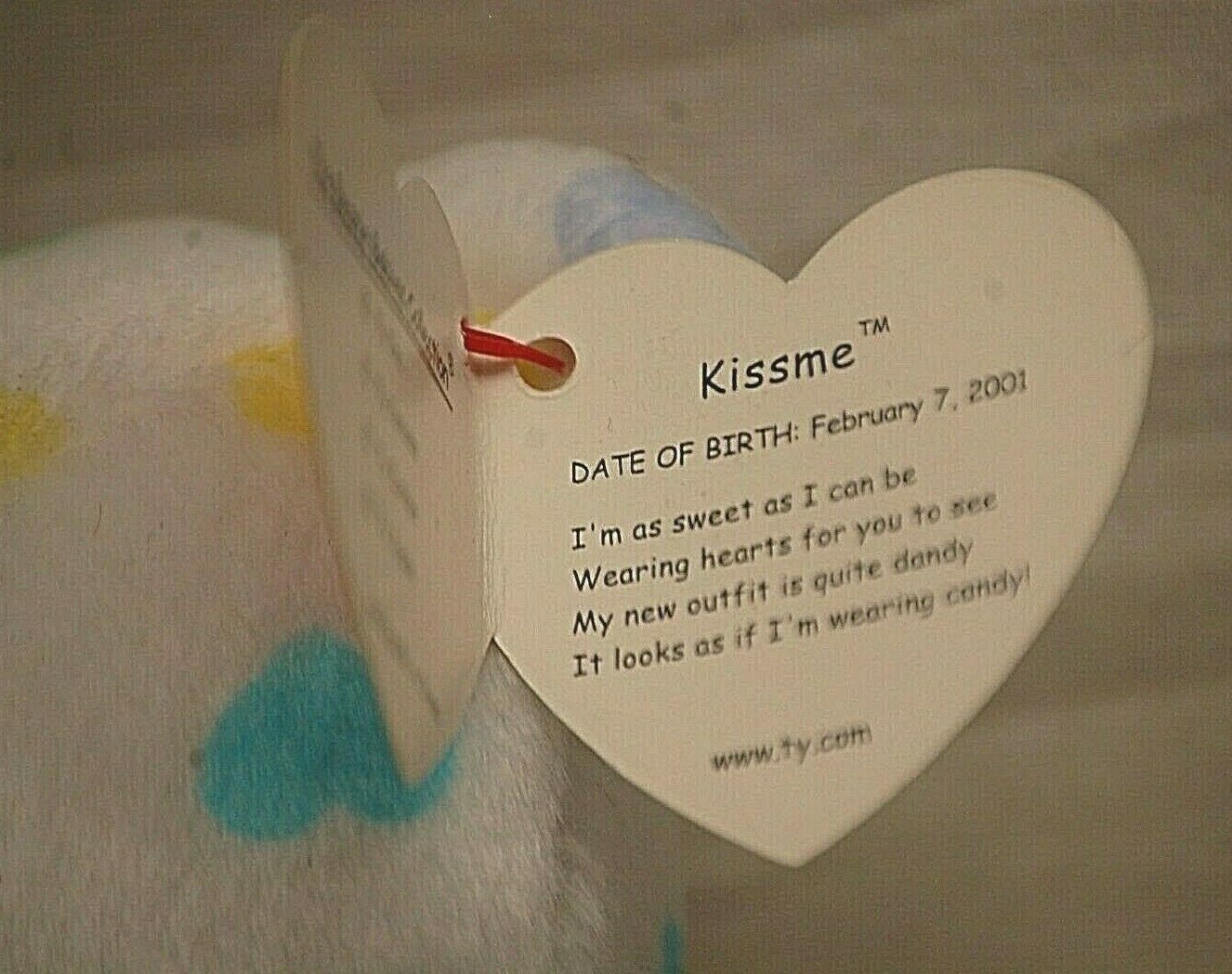 Ty Beanie Babies Kissme Pastel Color Heart Beanbag Plush Toy Swing & Tush Tags j