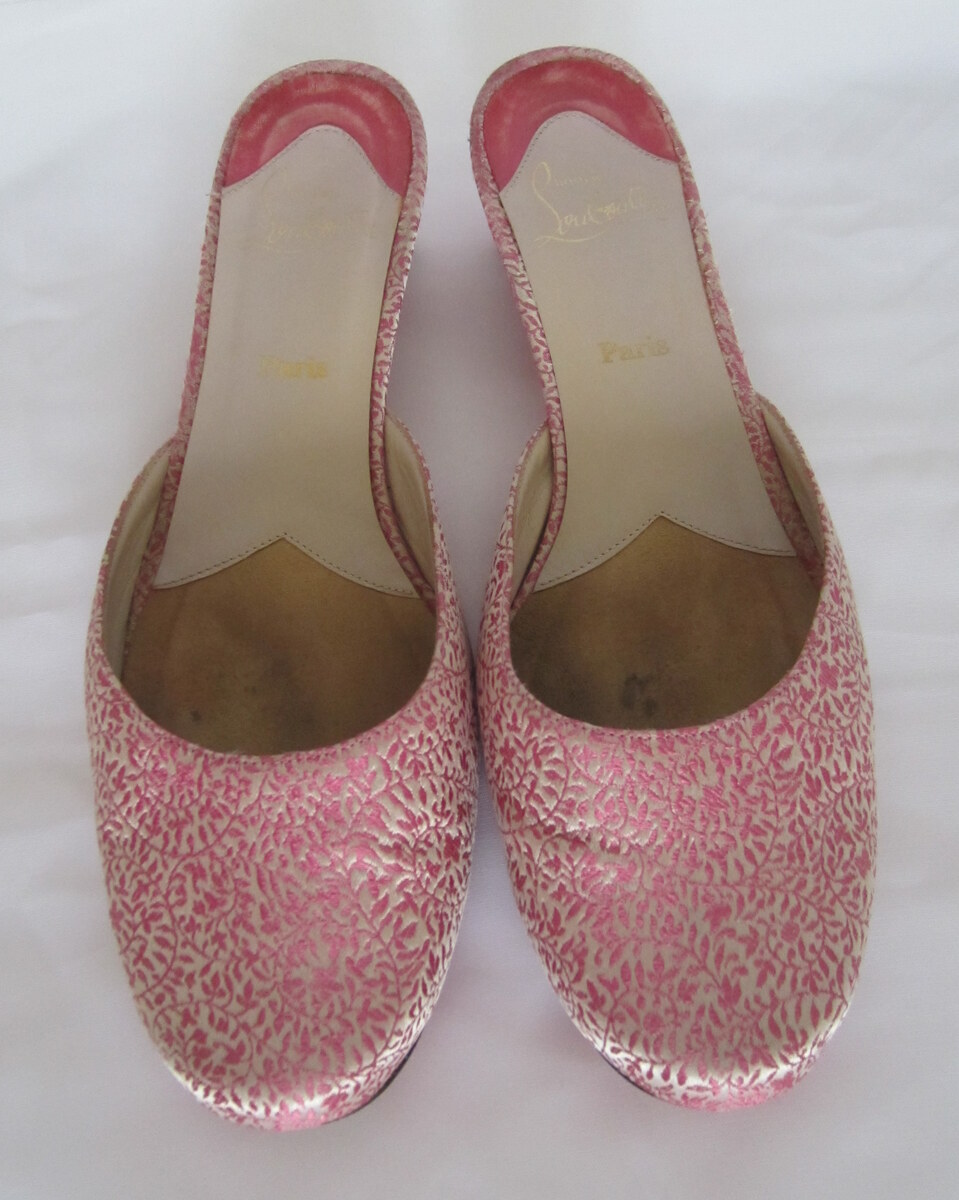 $700+ AUTH Louboutin pink jacquard silk and 50 similar items