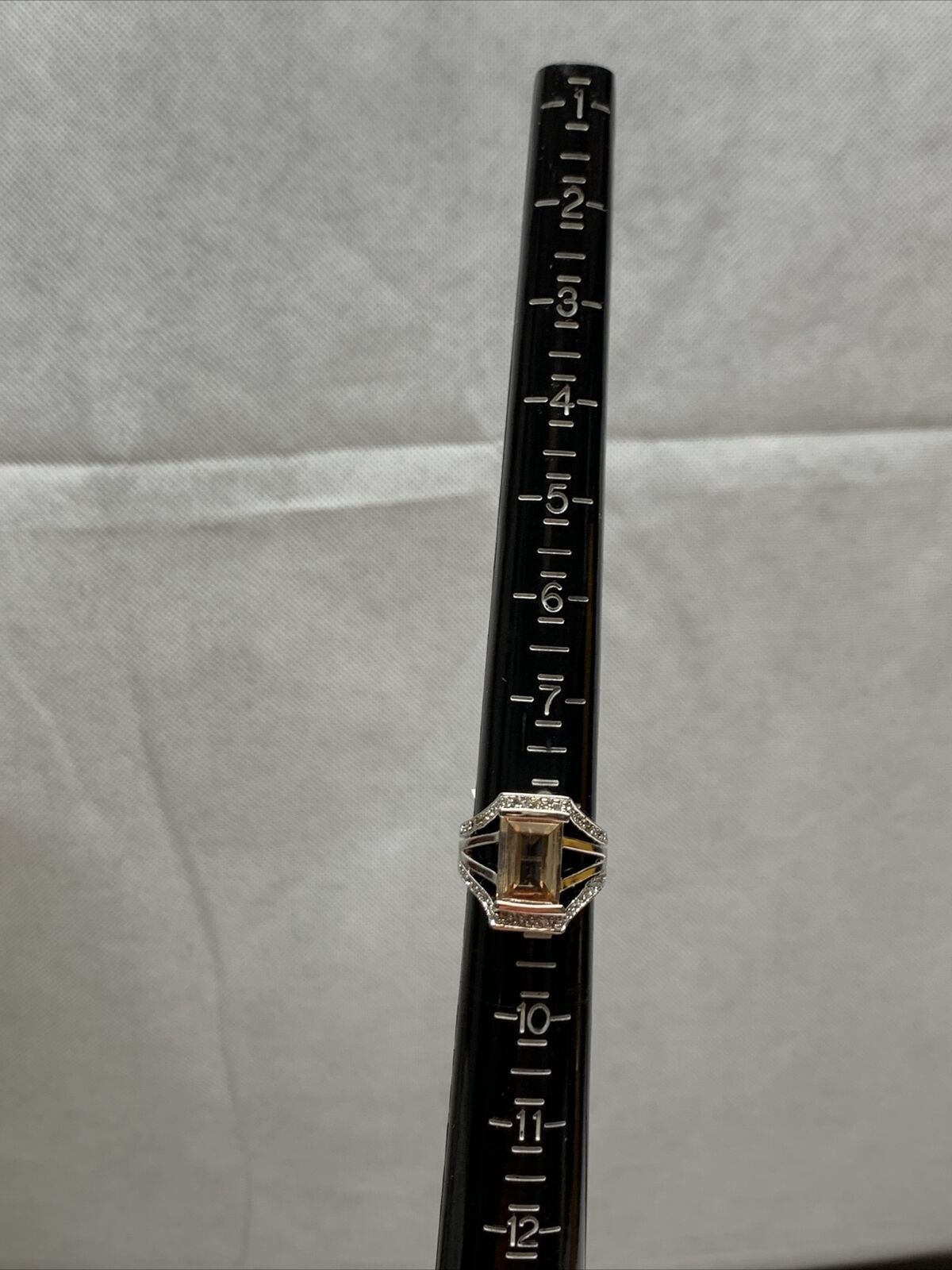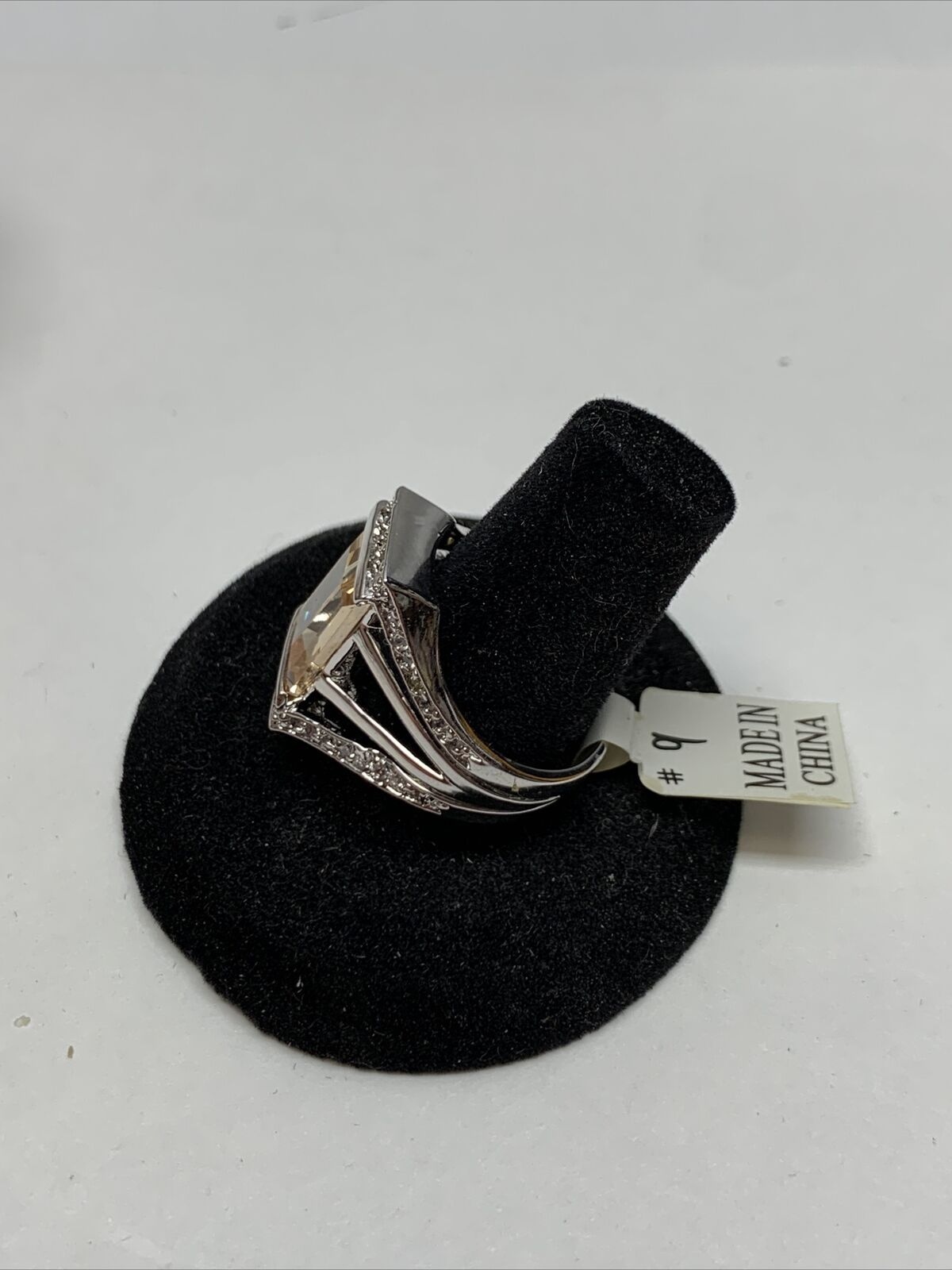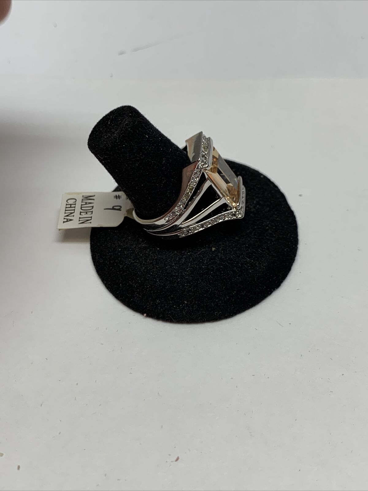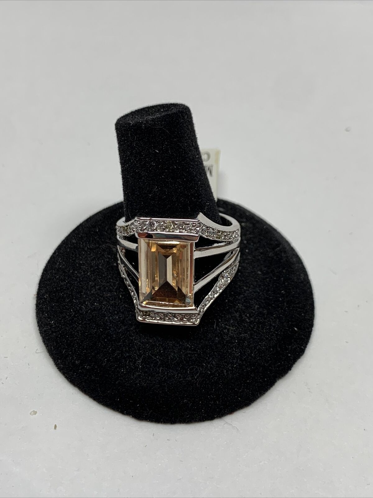 Stunning Silver Tone Simulated Light Orange Stone Ring Size 9 KG