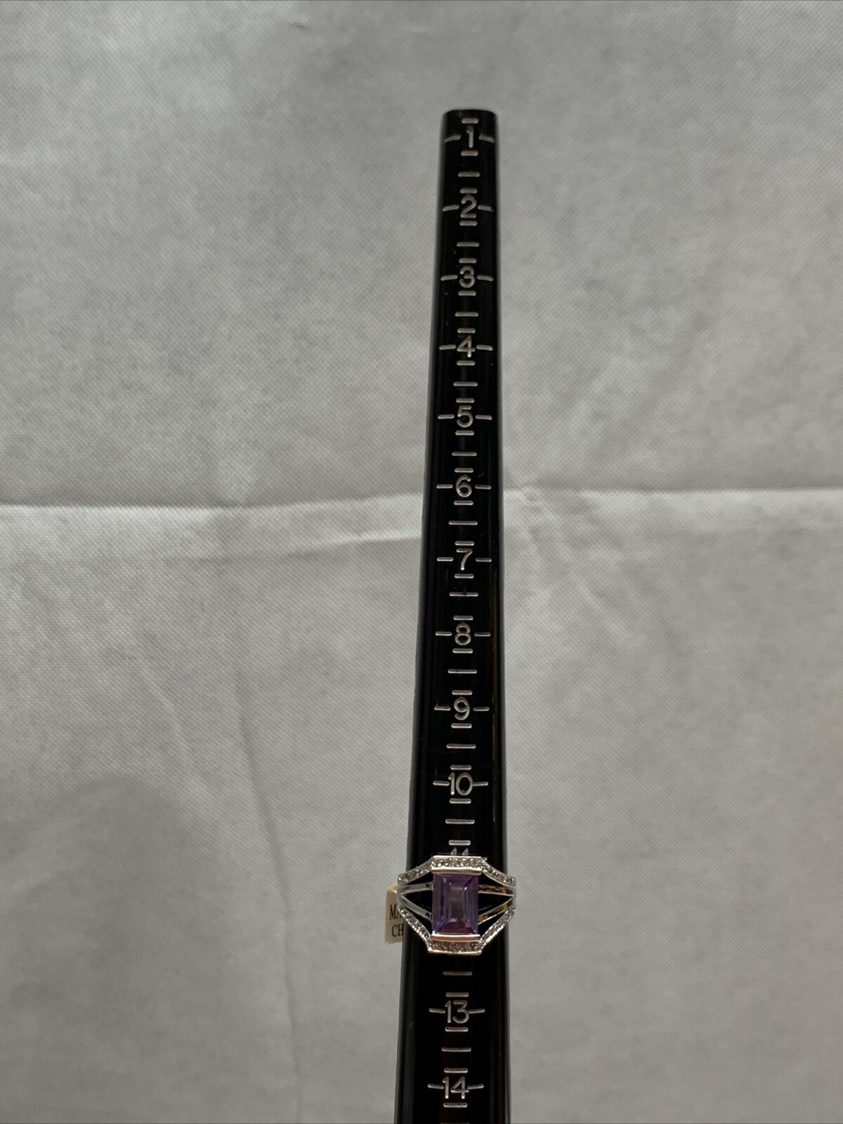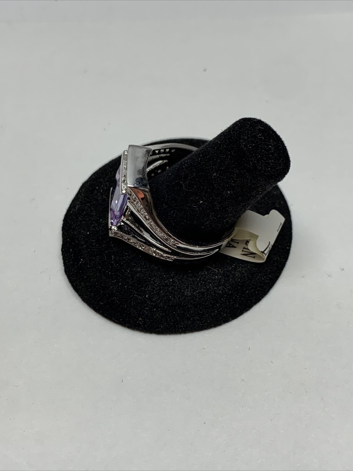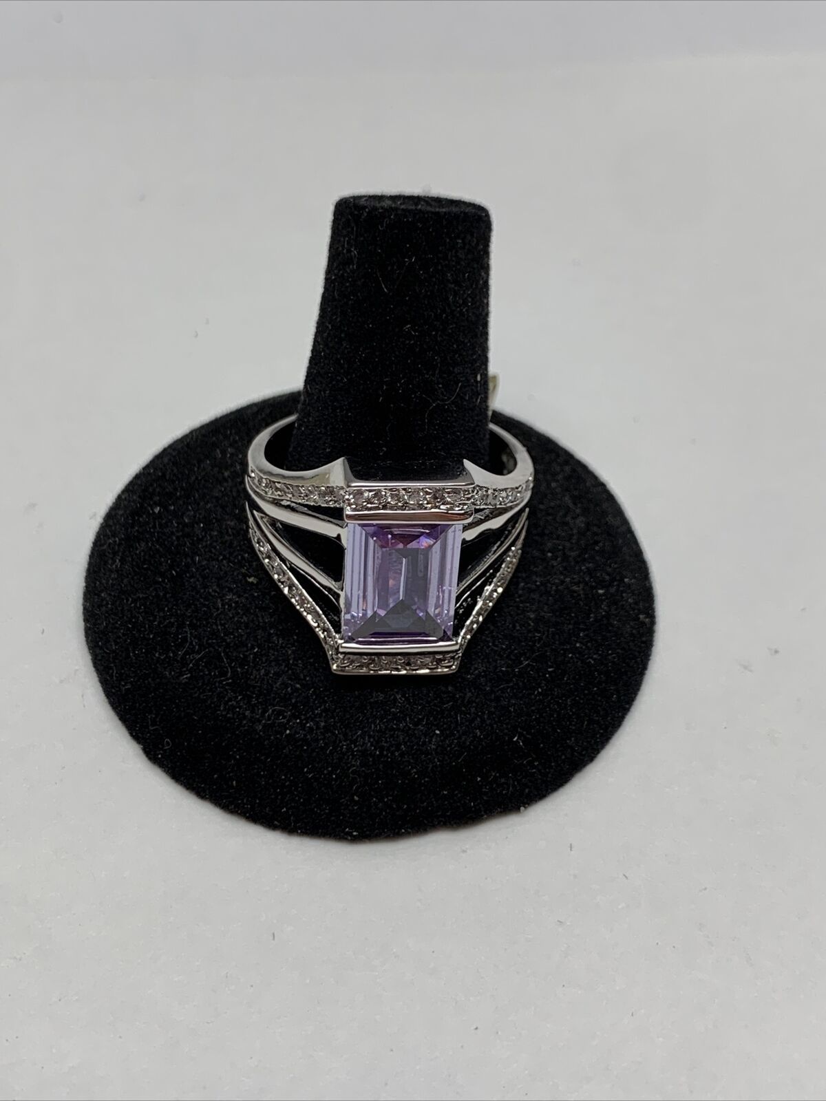 Stunning Silver Tone Round Simulated Square Purple Stone Ring Size 12 KG