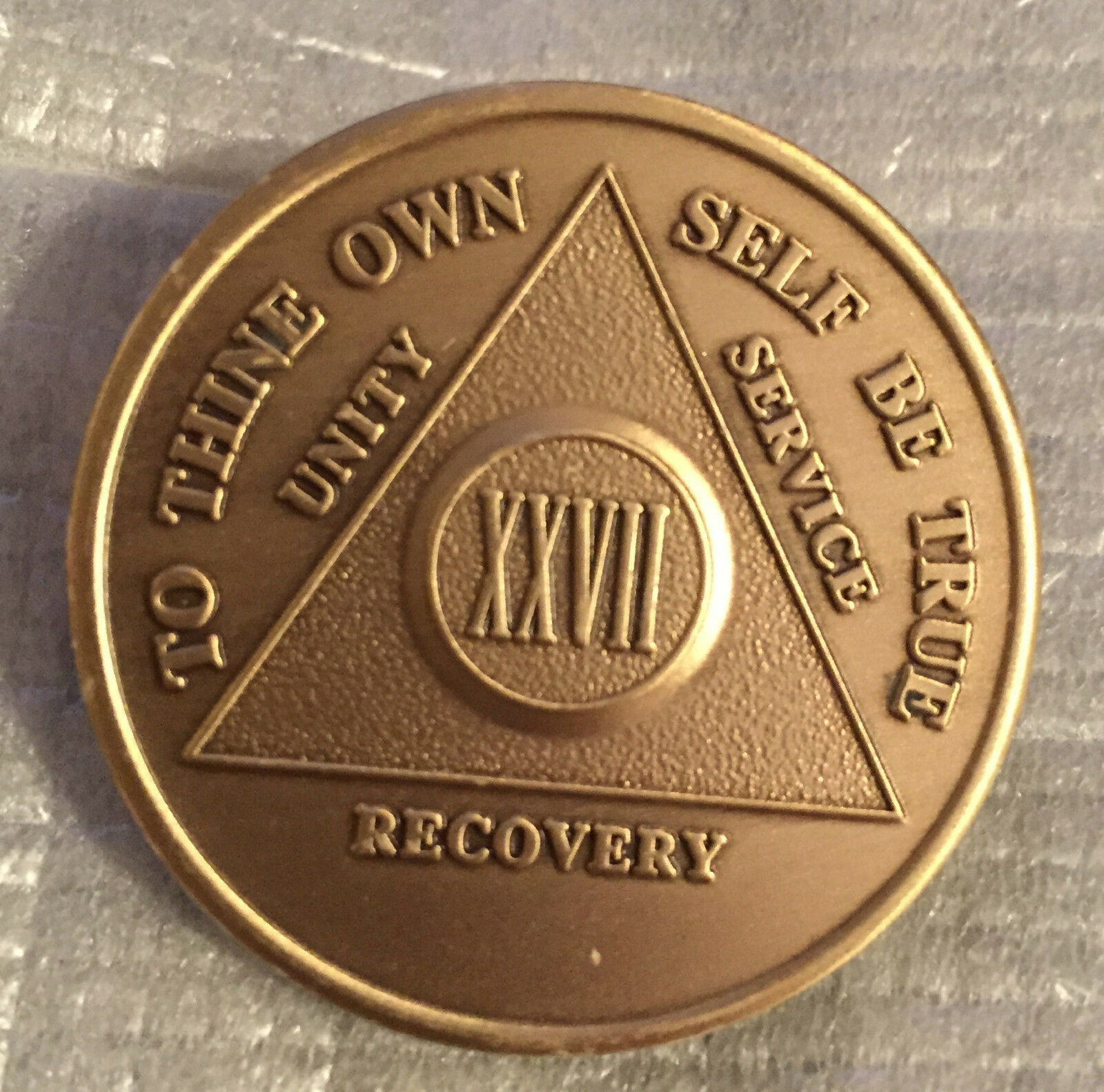 Alcoholics Anonymous 27 Year Recovery Coin Chip Medallion Medal Token AA Bronze