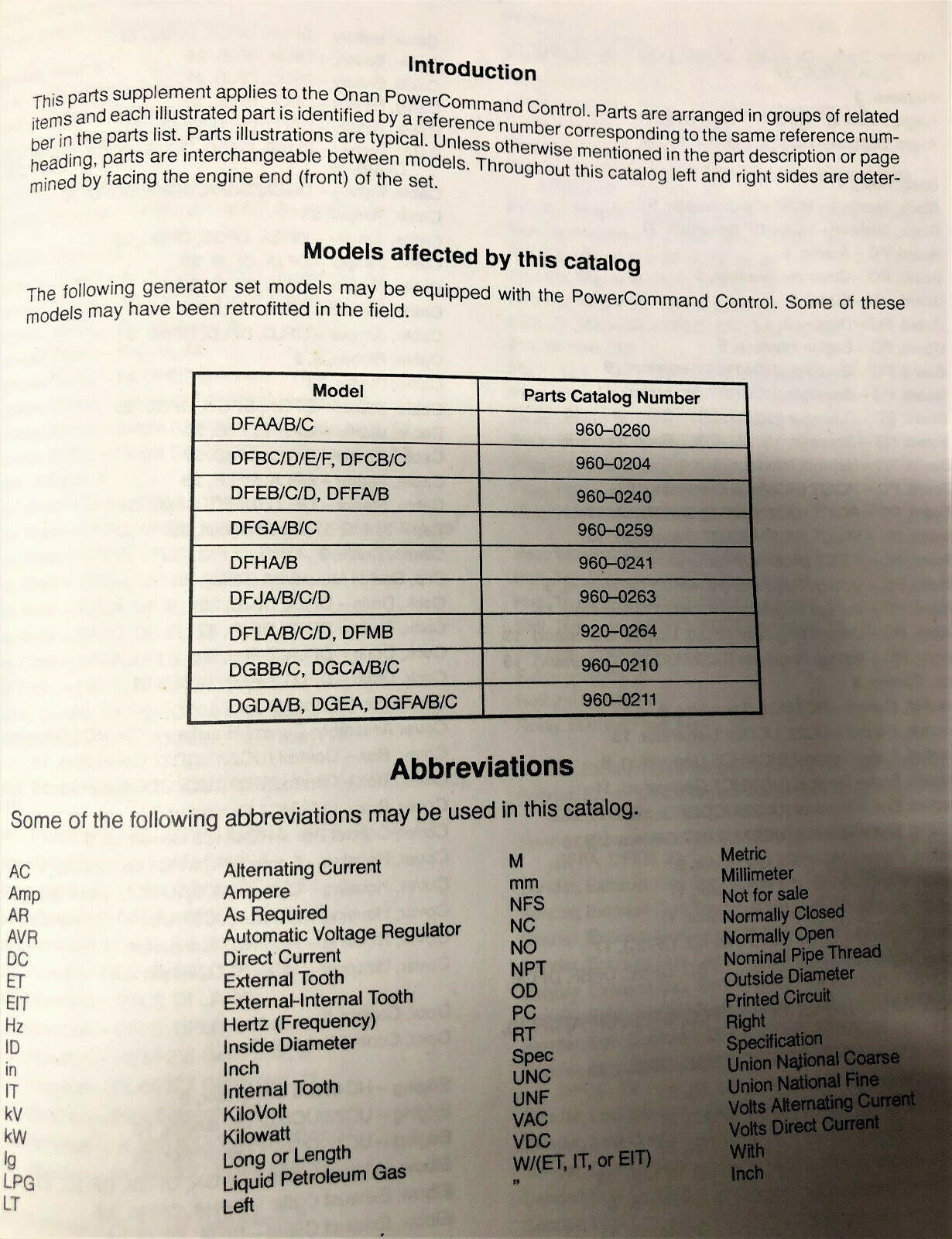 Cummins Power Command DF/DG Generator Control Box Parts Manual 1997