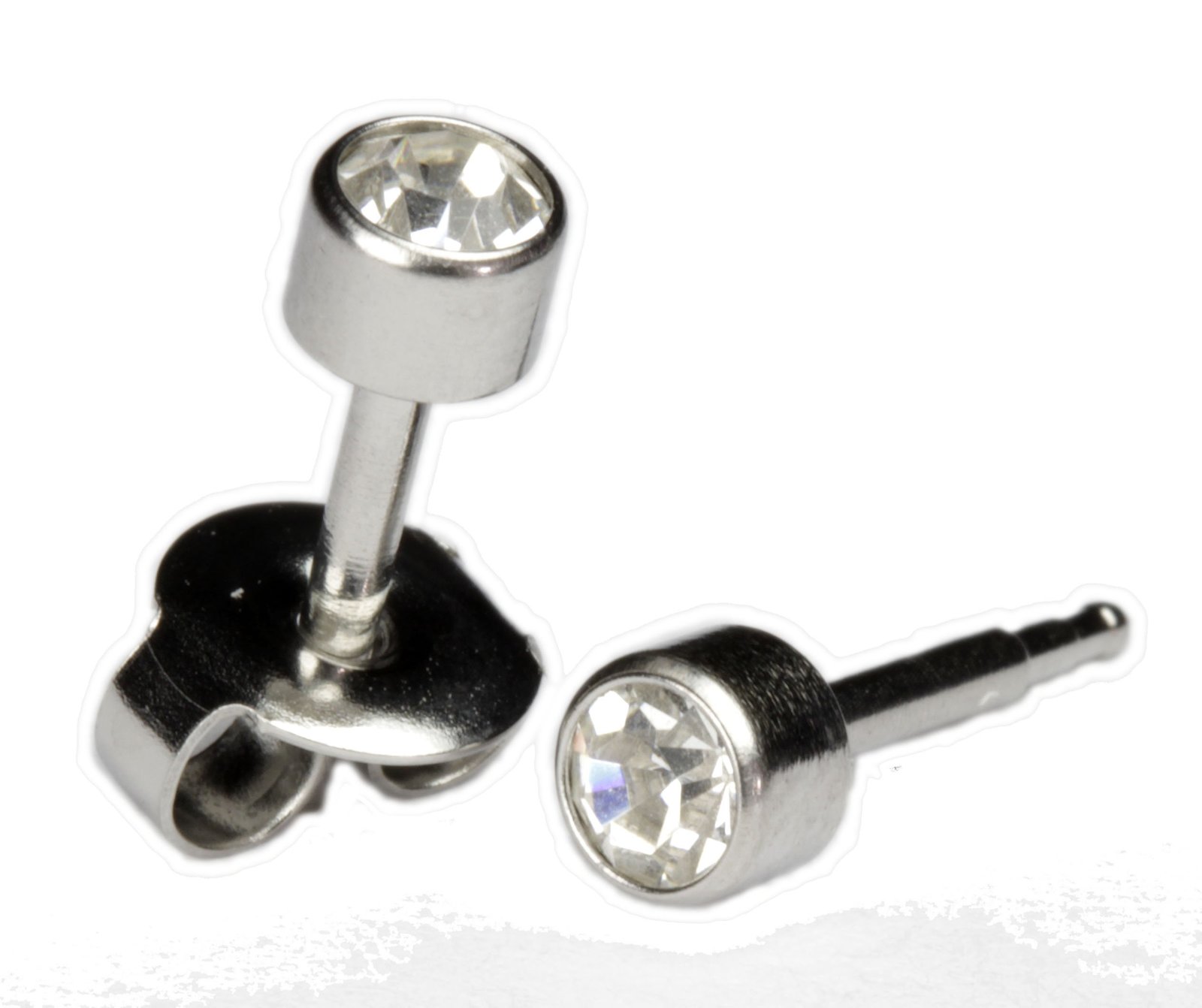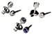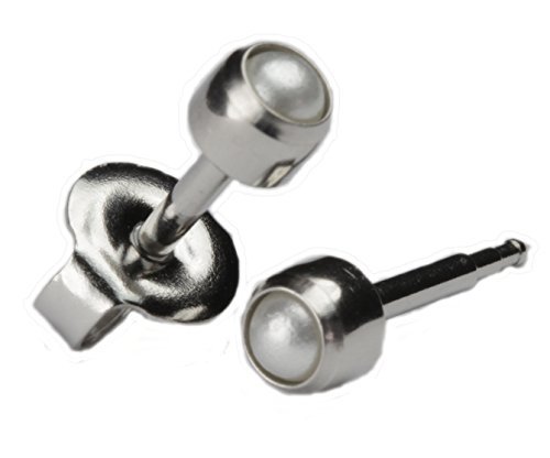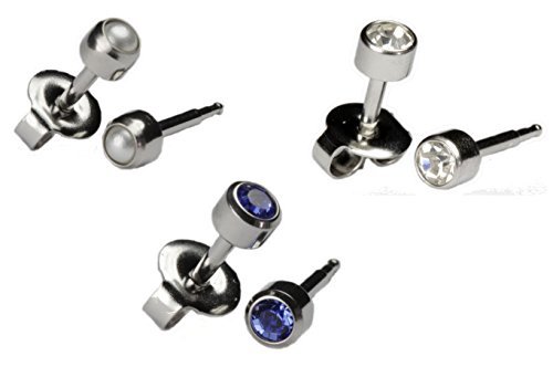 Ear Piercing Earrings Silver 3 Pairs of 4mm Stainless Steel with Gem 16ga Thick