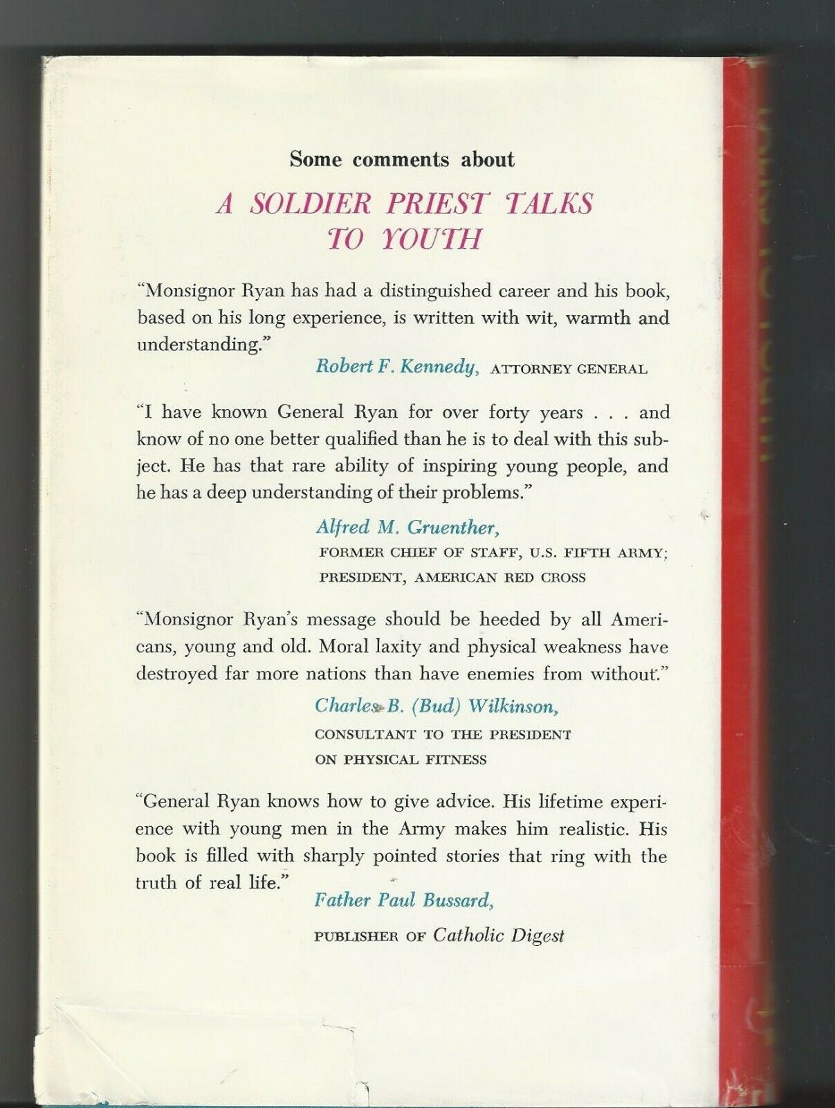 A SOLDIER PRIEST TALKS TO YOUTH By Patrick J. Ryan. Hardcover. 1st edition 1963. 205 pages