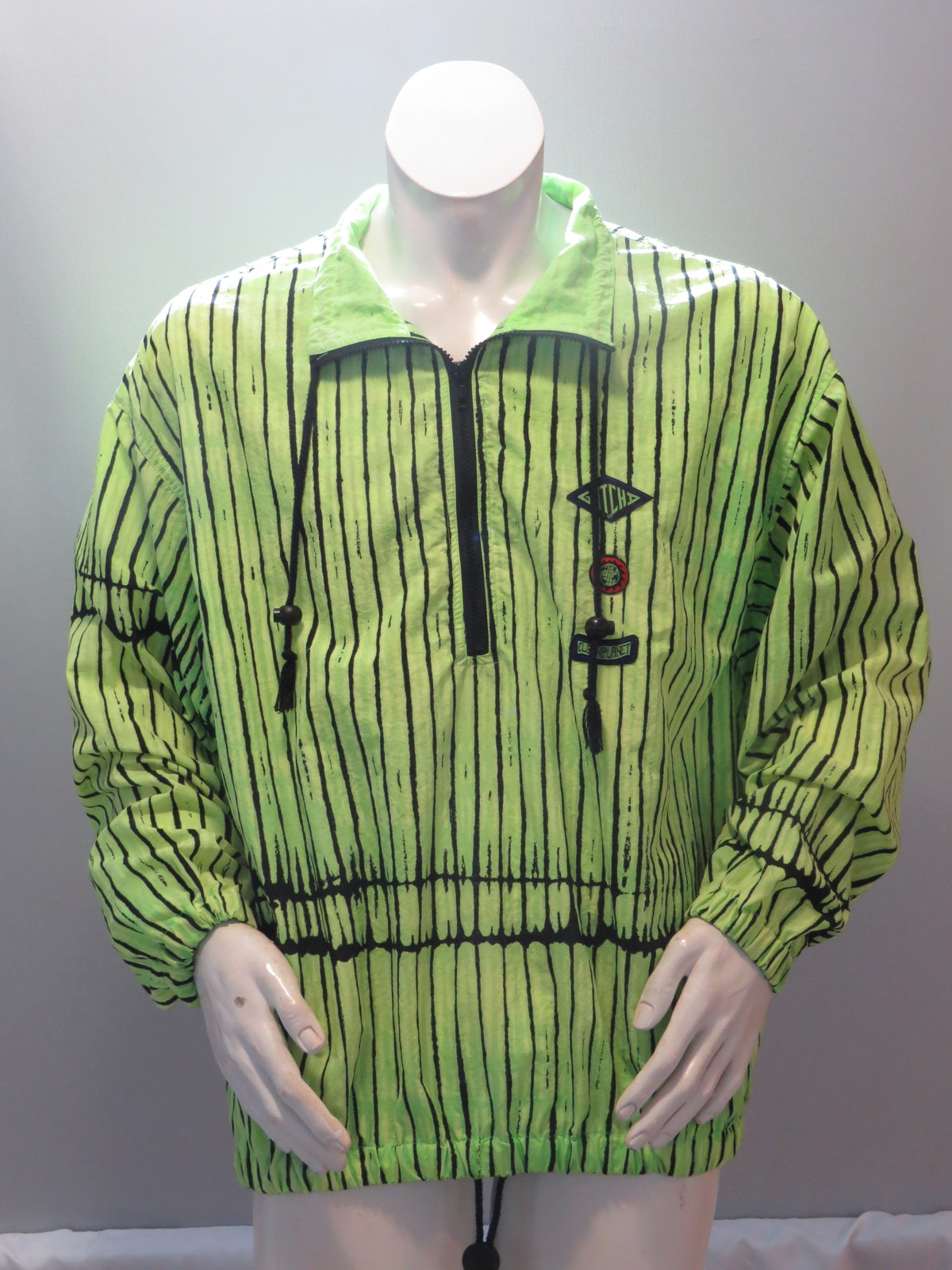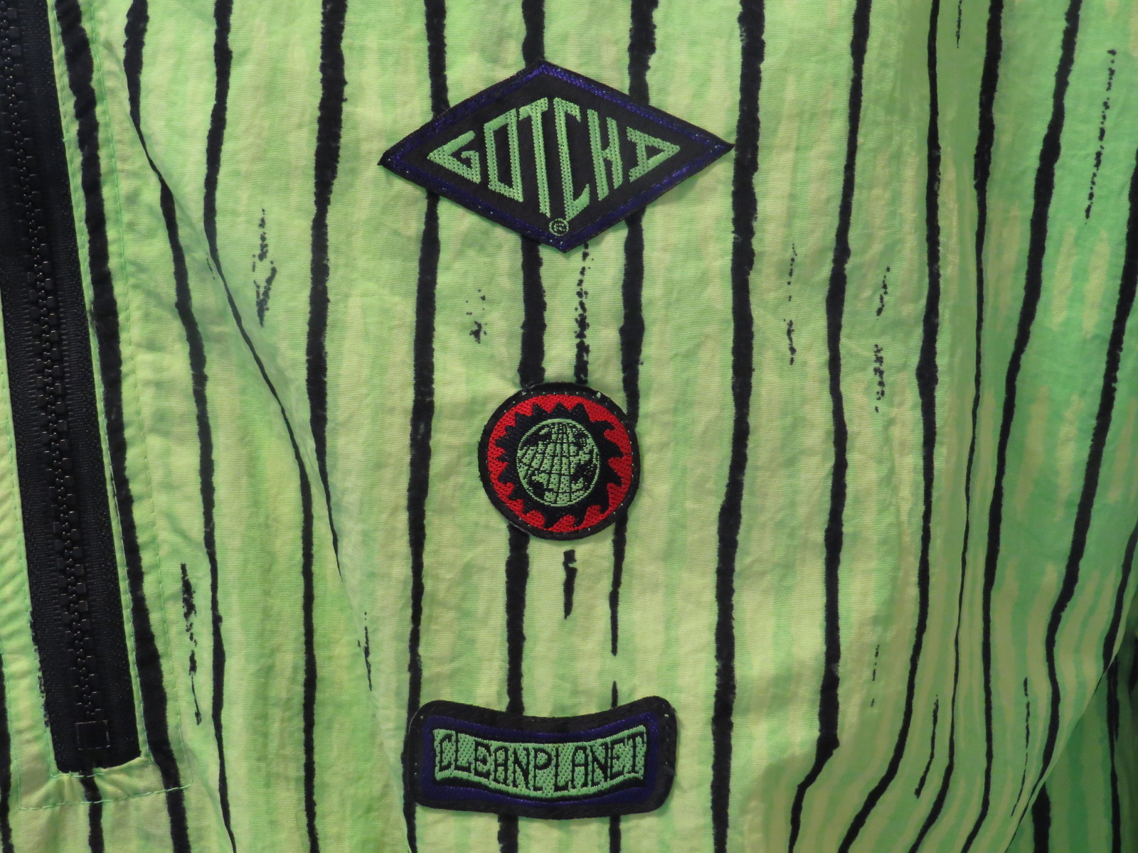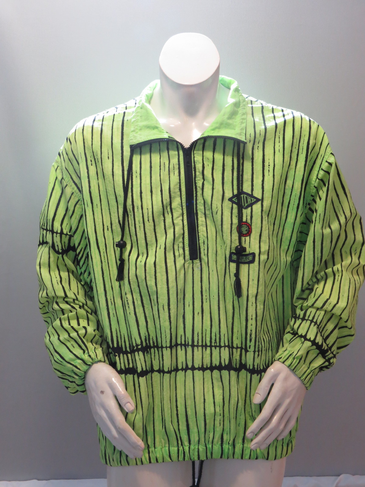 Vintage Gotcha Windbreaker - Neon Green Stiped - Men's Medium