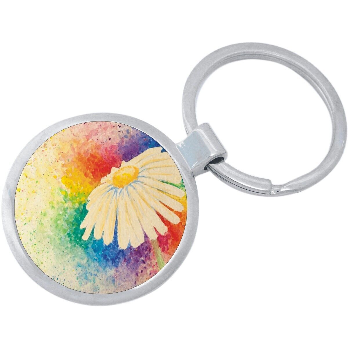 Watercolor Daisy Keychain. Our beautiful keychains are custom made and built to last.