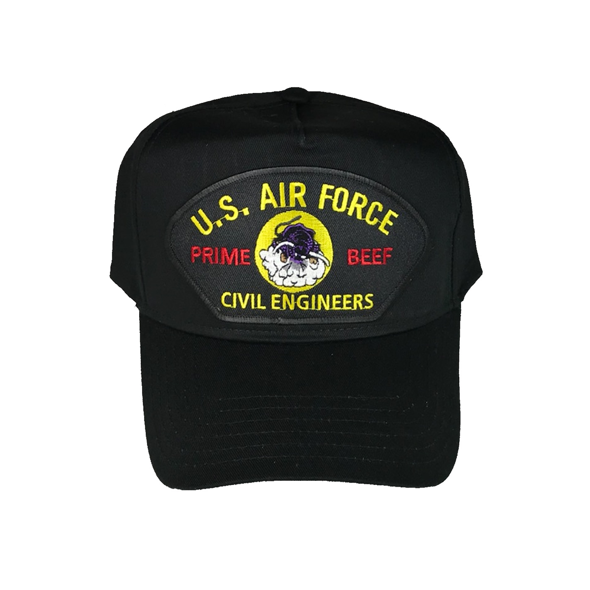 USAF PRIME BEEF RED HORSE Civil Engineer Veteran Hat - Black Golf Style Hat. - Size 1 Fits All Veteran Owned and Operated Business