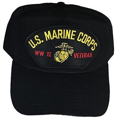 U.S. MARINE CORPS USMC WORLD WAR 2 WWII VETERAN HAT - BLACK - Veteran Owned Business. BLACK Cap High Detail and Impact - U.S. MARINE CORPS USMC WORLD WAR 2 WWII VETERAN HAT. 8 Rows Stitching on Visor and Pro Stitch on Crown 5 panel hat. U.S. MARINE CORPS USMC WORLD WAR 2 WWII VETERAN HAT - Adjustable Size, BLACK Golf Style. HatnPatch Is THE Veteran Owned and Operated Family Business - 2 Generations of Retired Marines - We Ship Your Order Within 24 Hours And Usually The SAME DAY!