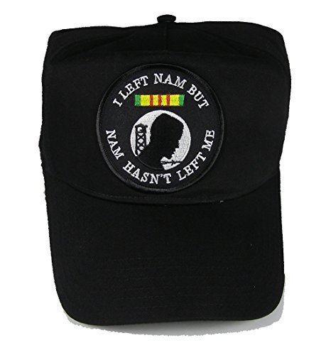 I Left Nam But Nam Hasn't Left Me Black Ball Cap. Adjustable closure, 5 panel hat with 3" round patch. Excellent hat and gift for Vietnam Veteran. Veteran Owned and Operated Business.