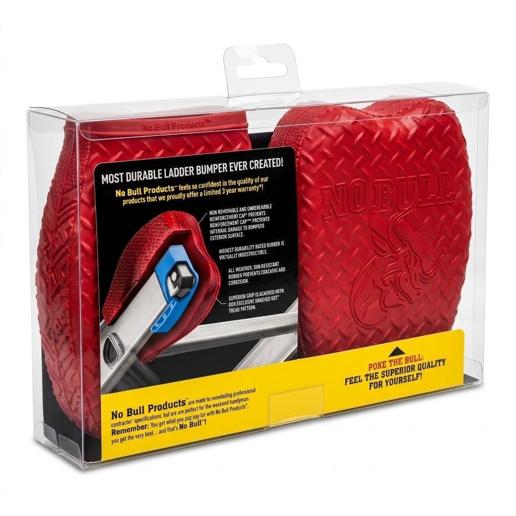 The No Bull Ladder Bumpers (2 - Pack) are heavy-duty, all-weather, sun resistant, non-skid rubber guards that protect your siding and other work surfaces.