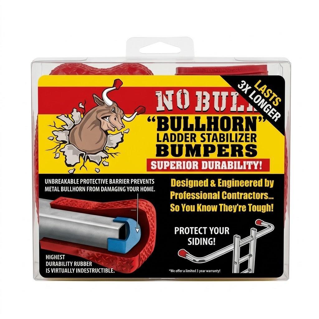 The No Bull Ladder Bumpers (2 - Pack) are heavy-duty, all-weather, sun resistant, non-skid rubber guards that protect your siding and other work surfaces.