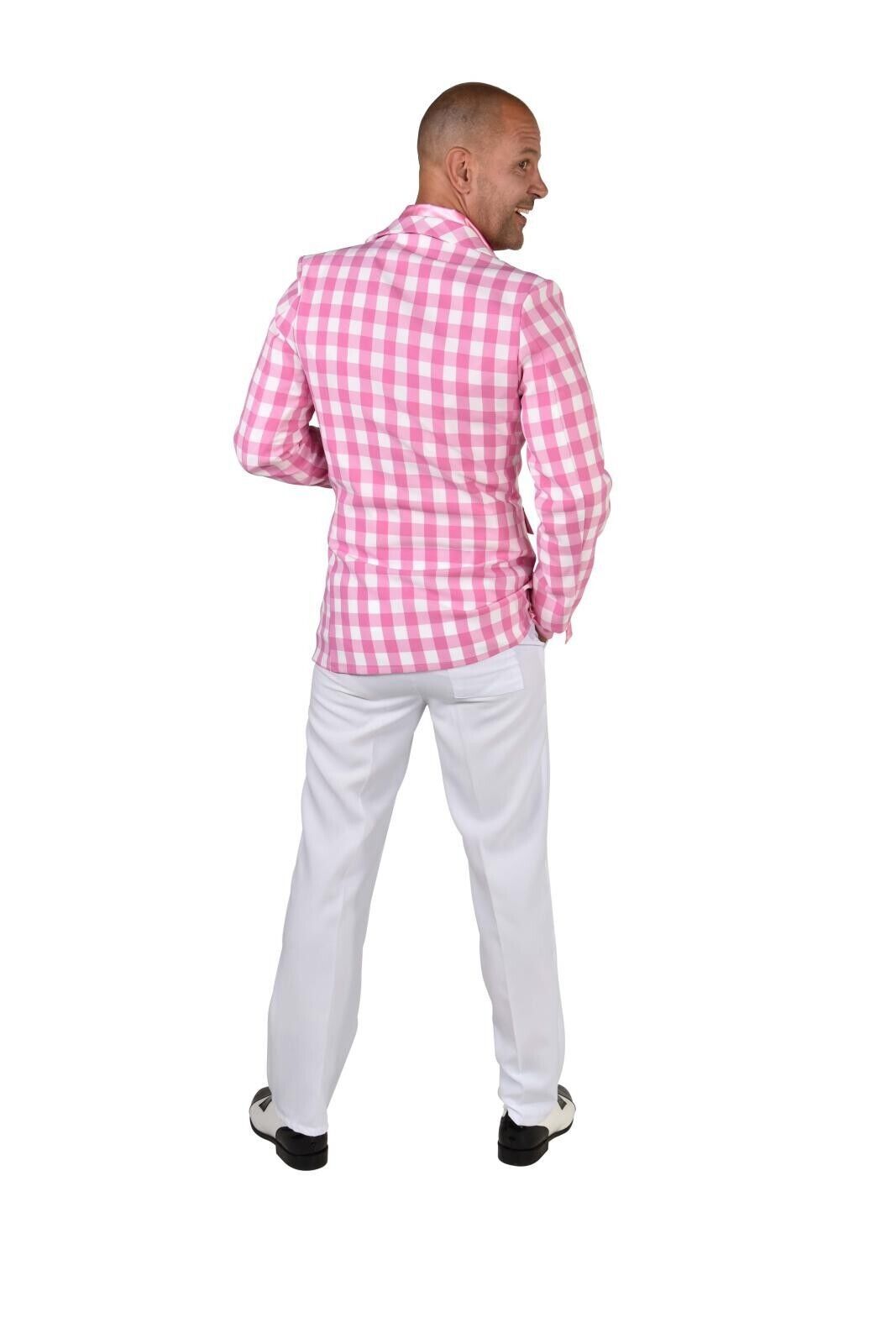Dress up as the iconic Barbie's boyfriend, Ken, with this custom-made pink and white jacket. Perfect for fancy dress parties, this jacket is available in sizes ranging from Small to XXL. The fabric material ensures a comfortable fit for all sizes. The jacket's design is inspired by the Barbie theme, making it an ideal outfit for fans of the iconic doll.