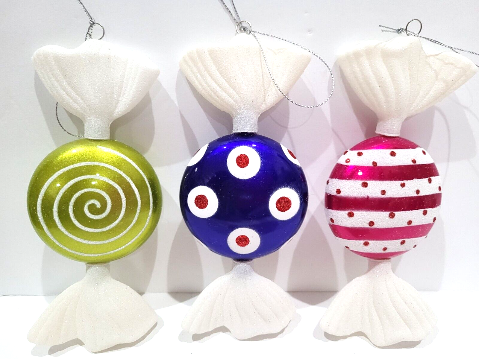 Up for sale we have these adorable candy plastic ornaments for your holiday tree. These measure approx 7.5" tall not including the round tip.