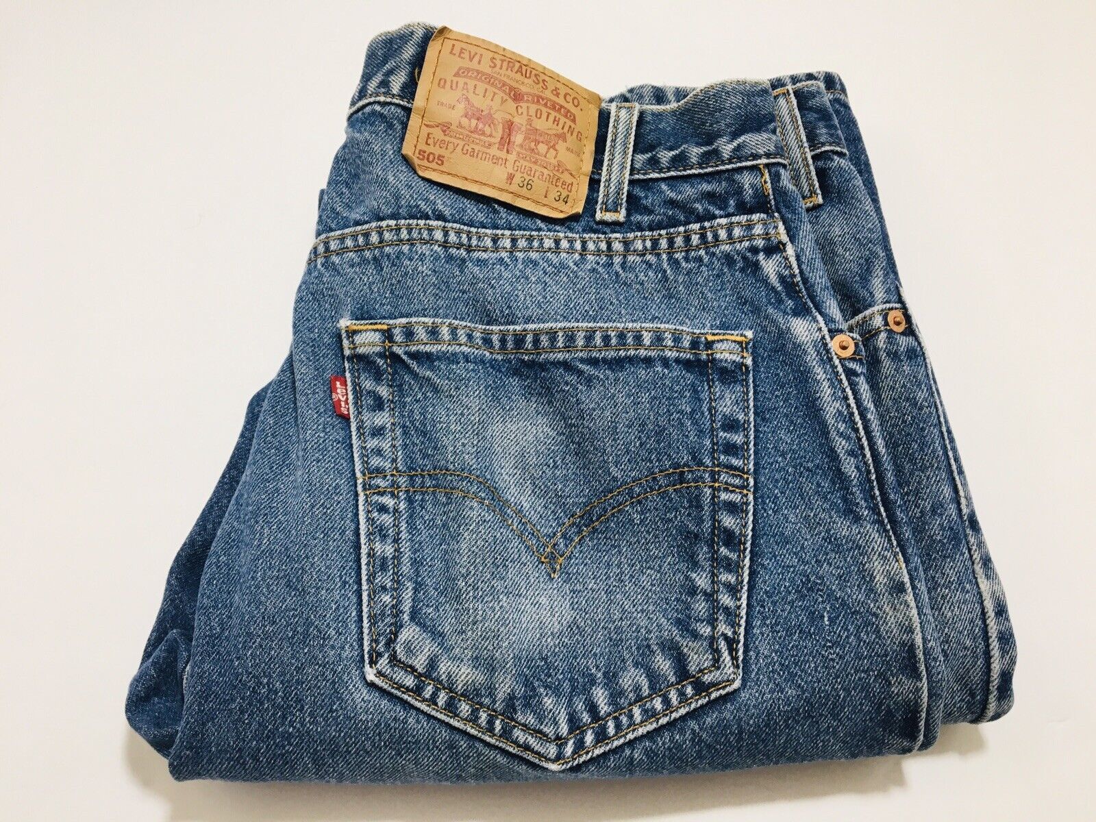 VTG Levi's Men's 505 Regular Fit Jeans Blue 36x34 Rugged Heavy Cotton Denim Nice condition!