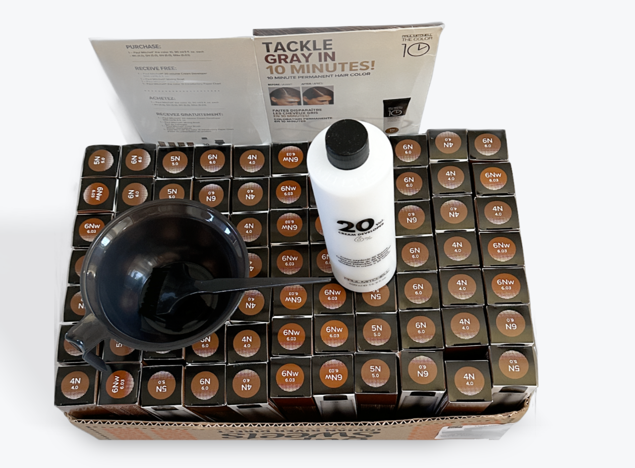 Paul Mitchell tackle gray in 10 mins. quick coverage , low ammonia color and achieve up to 100% gray coverage with beautiful results.
