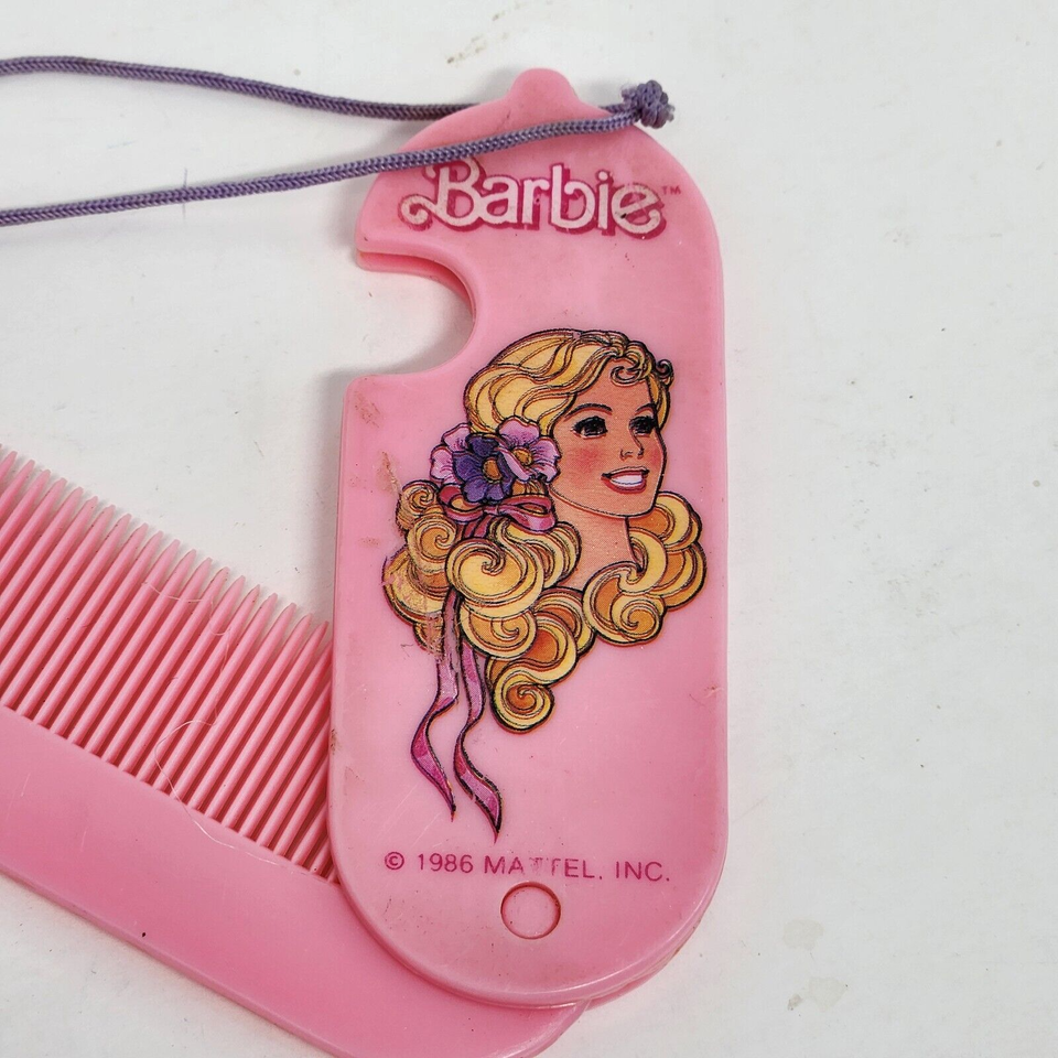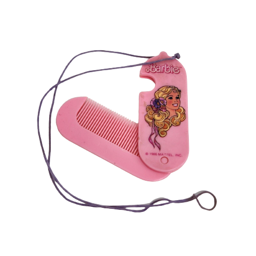 VINTAGE 1986 MATTEL BARBIE DOLL NECKLACE W/ PINK PLASTIC FOLDABLE HAIR COMB