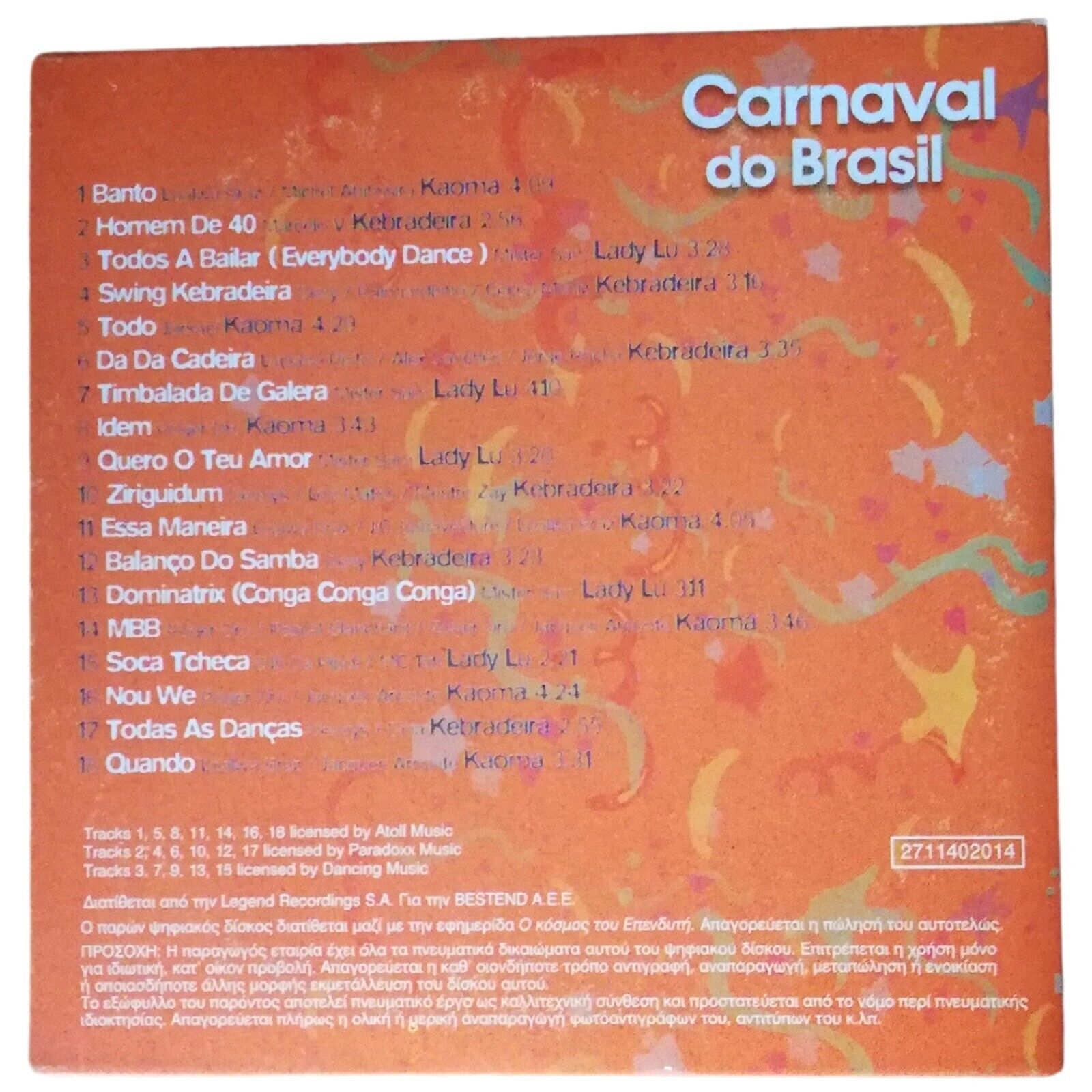 Carnaval Do Brasil CD, Samba Lambada Latin Dance Music, Kaoma/Lady Lu/Kebradeira
