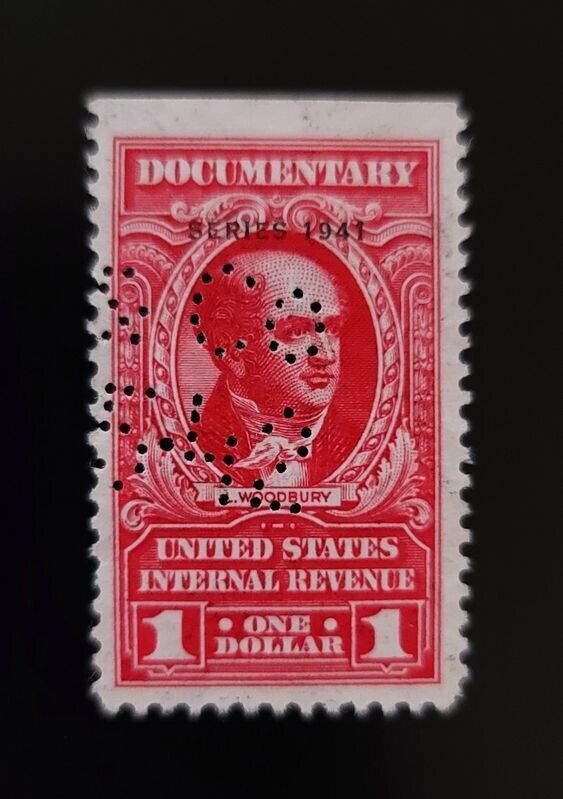 1941 $1 U.S. Internal Revenue, L. Woodbury, Documentary, Carmine, R323 Overprint