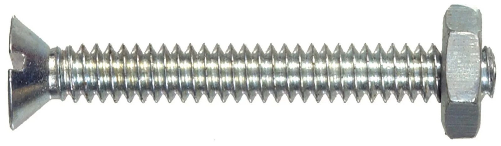 IDEAL FOR METAL FASTENING: Stove bolts are engineered for metal-on-metal fastening applications INSTALLS EASILY: Fasten with screwdriver to reduce risk of over-tightening PRE-DRILLING RECOMMENDED: For installation, drill a hole in the material that matches the diameter of the bolt PART OF A COMPLETE FASTENING SOLUTION: Each bolt includes a hex nut to make a complete fastener CORROSION-RESISTANT FINISH: Zinc plating offers moderate protection against rust and corrosion 0 0 8 flat head machine screws per pack