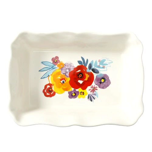 Spruce up your kitchenware collection with this stunning rectangular ceramic floral stoneware baking dish from Pioneer Woman. This unique piece features a ruffle top and a multicolor floral design that is sure to catch the eye of visitors. Measuring 12 inches in length and 8 inches in width, this baking dish is perfect for baking and serving your favorite dishes. Made from high-quality ceramic, it is durable and long-lasting. With its beautiful surface coating, this baking dish is not only functional but also adds a touch of elegance to your kitchen. Order now and add a touch of class to your kitchen!