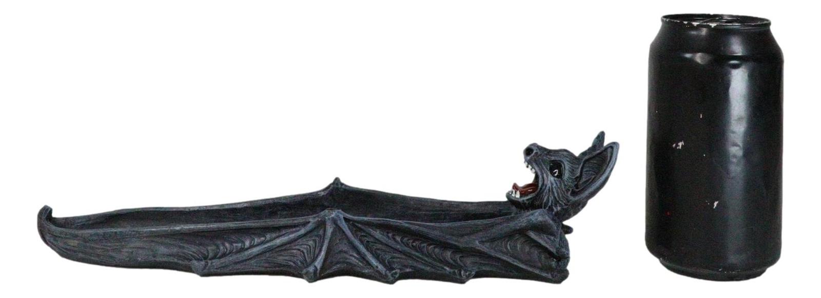 ? This Macabre Bat Incense Burner measures 2.5" High, 11.25" Long and 3" Wide approximately. It weighs about 13 ounces.