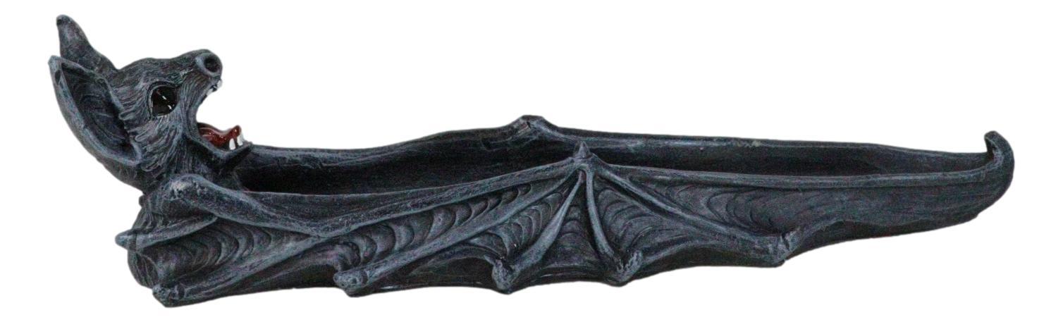 ? This Macabre Bat Incense Burner is made of polyresin, hand painted and polished individually. Incense stick in photos are not included with the item.