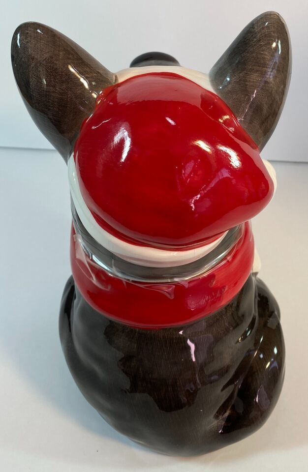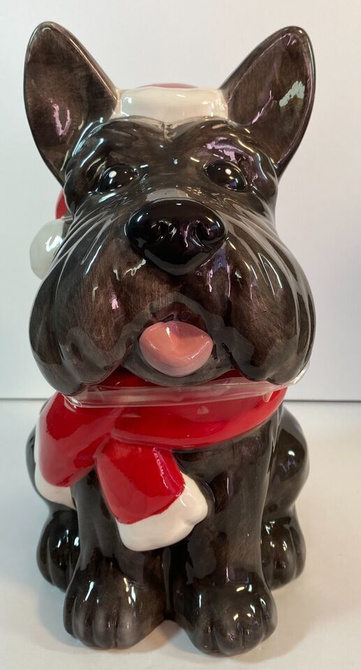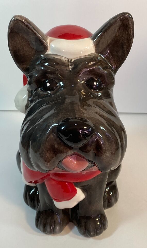 Black Scottie Dog Cookie Jar w/ Santa Hat, Ceramic, 12" - Holiday Christmas- NEW