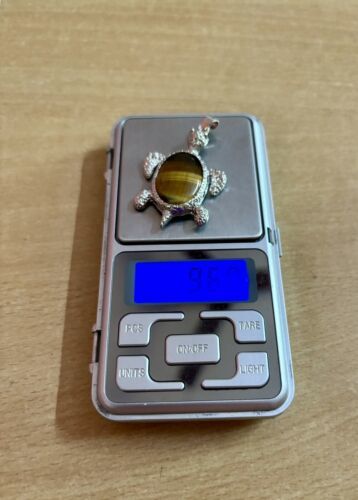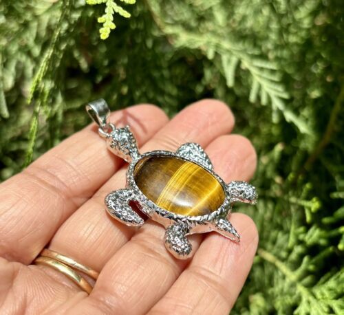 Oxidized Silver Hindu Religious TURTLE TORTOISE Pendant Locket Yellow Tigers Eye