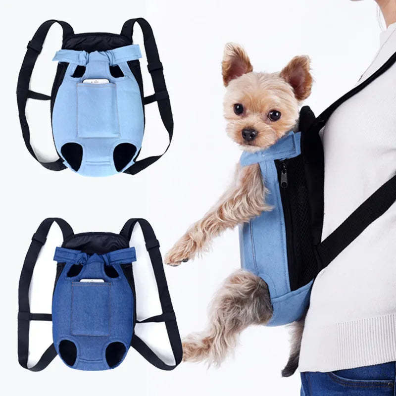 Anywags Pet Carrier Large Denim Blue Denim Backpack for Outdoor Travel With Fron