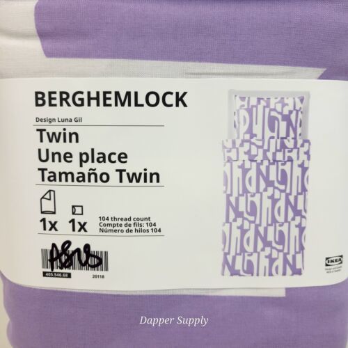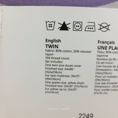 IKEA BERGHEMLOCK Twin Duvet Cover & Pillowcase White /Lilac New