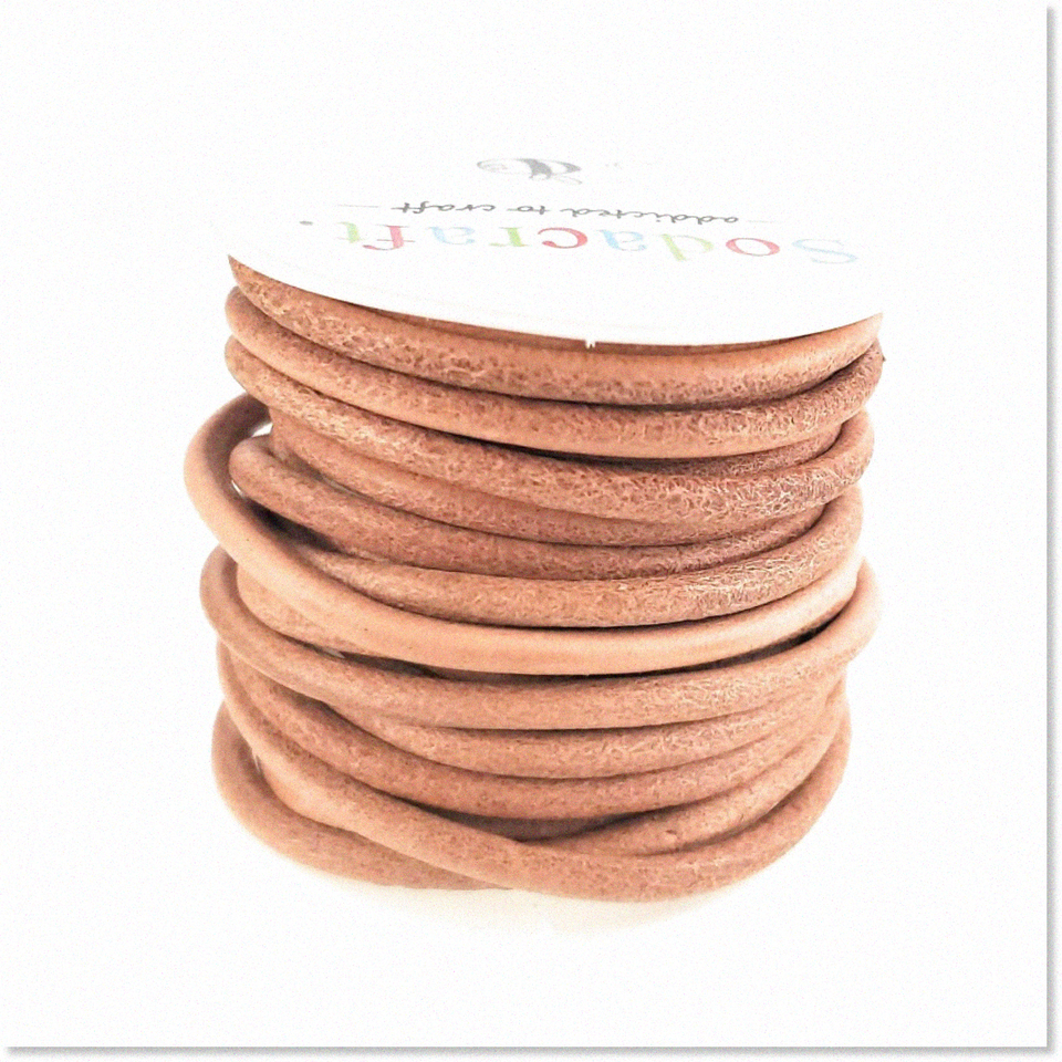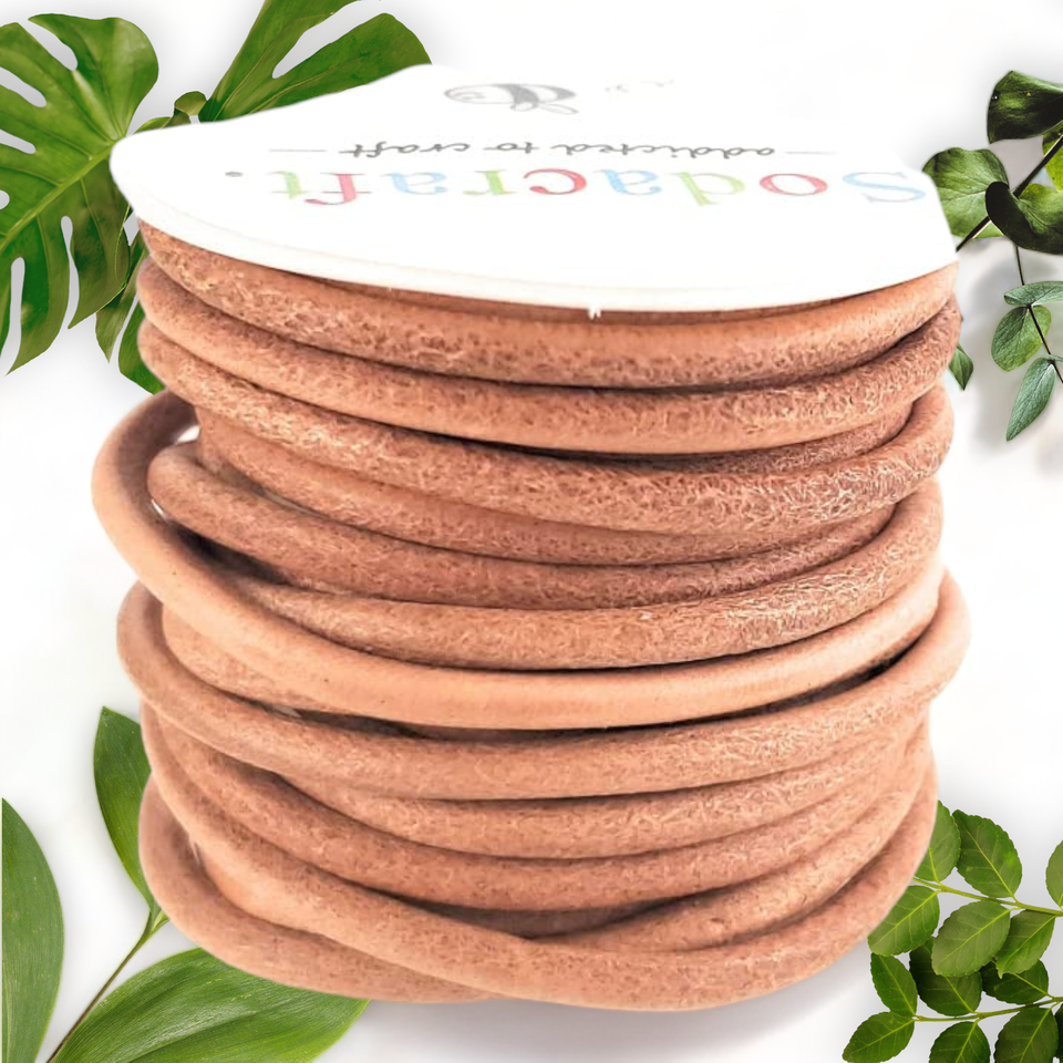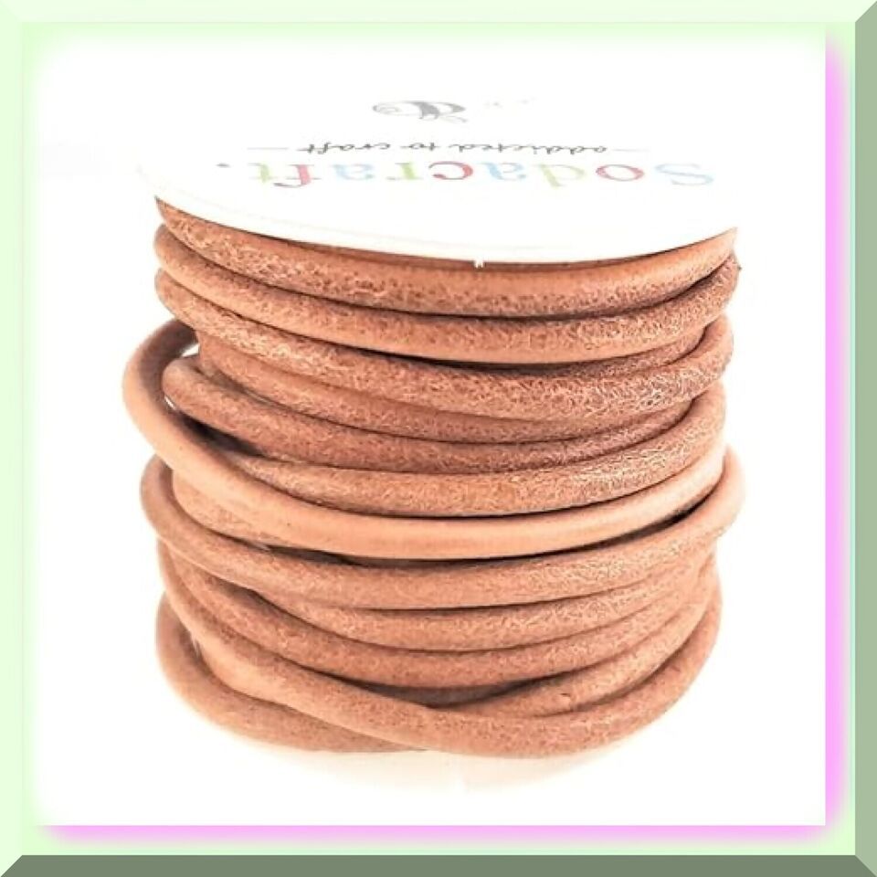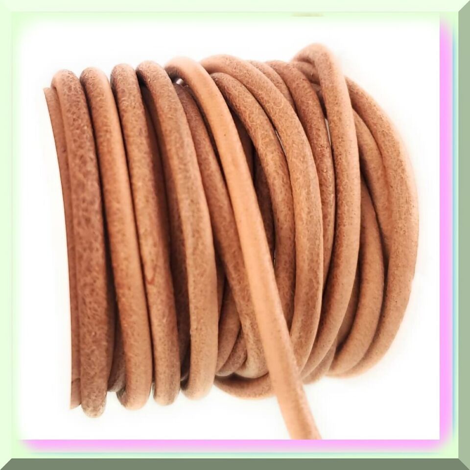 Premium Quality Natural Tan Light Brown Round Cowhide Leather Cord Spool - Ideal