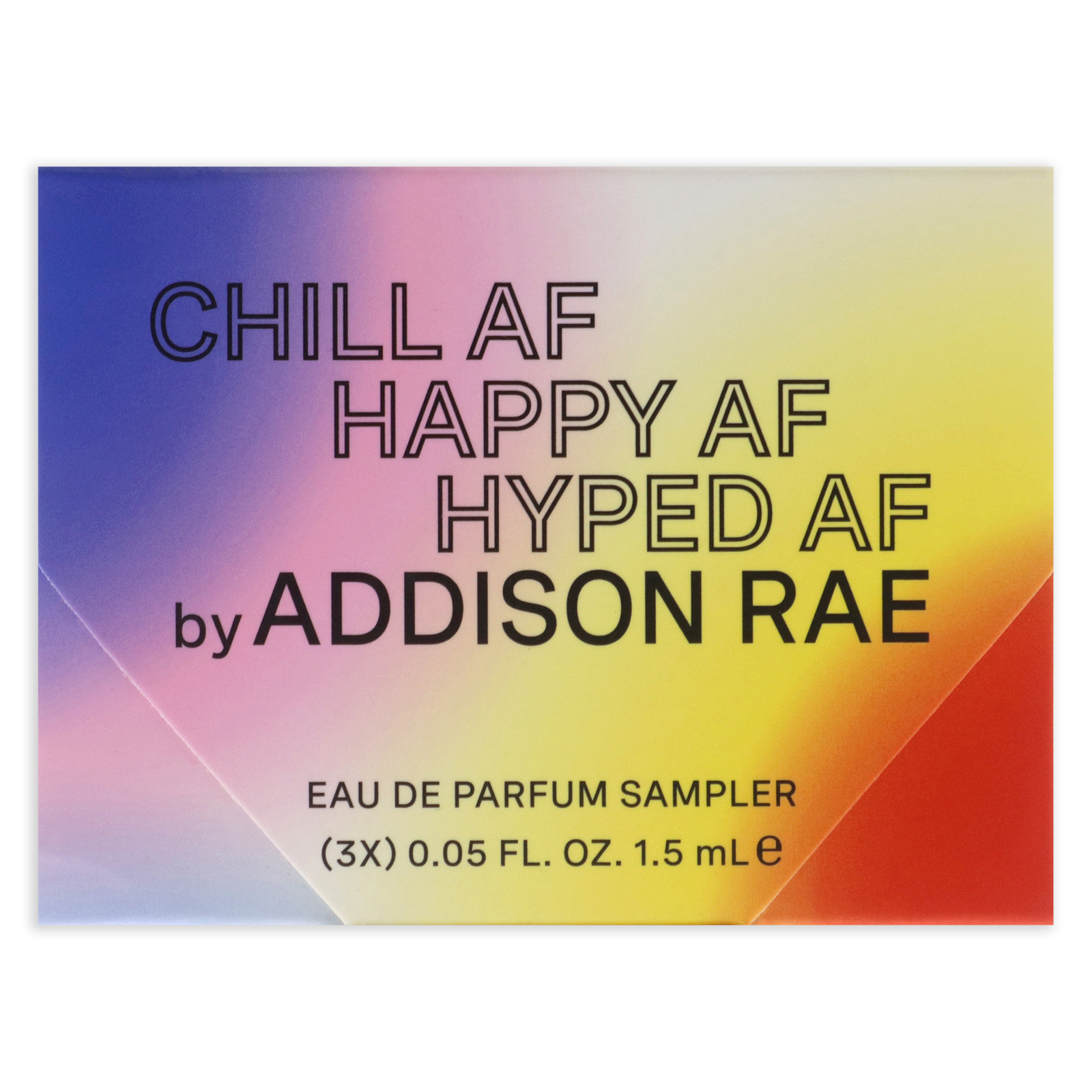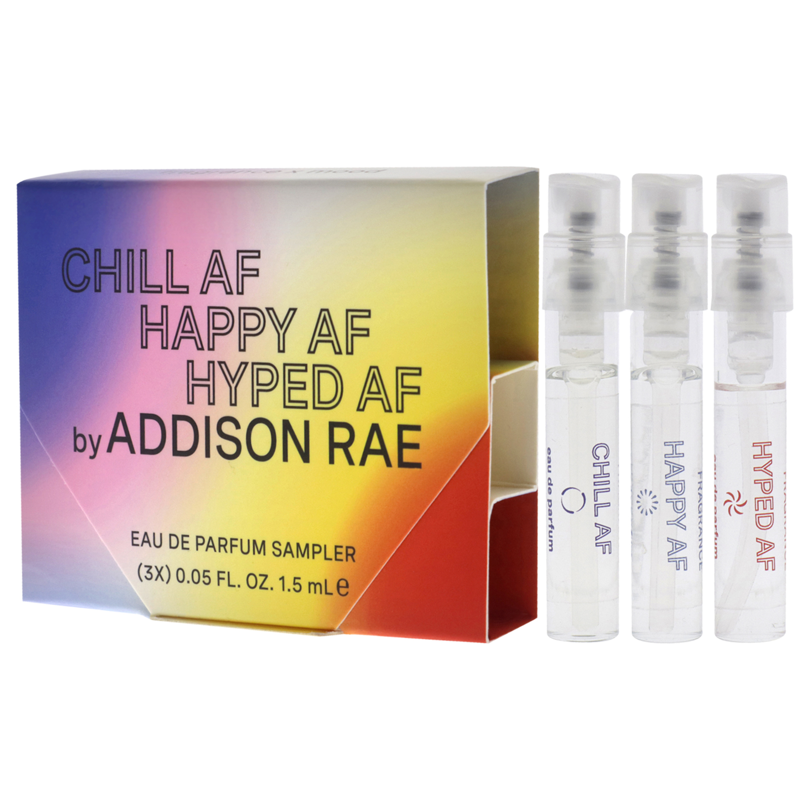 The AF collection bundle is a set of 3 which includes Happy AF is the scent for all-day positive vibes,Hyped AF is the energy you want to radiate, bottled, Chill AF is the scent you could wear on a date but also to meet the parents.