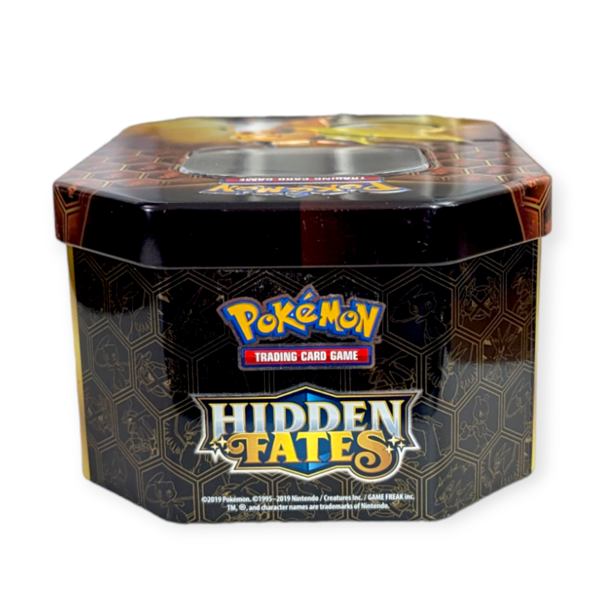 Hidden Fates Pokemon Storage Tin: Raichu with Charizard and Gyarados (empty)