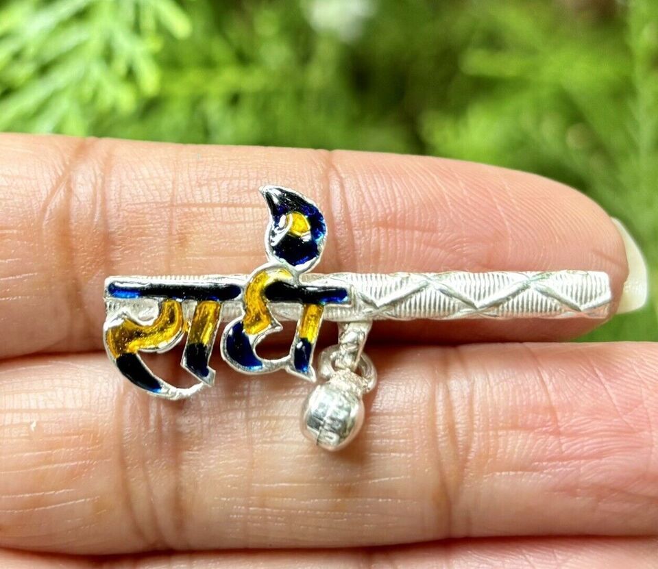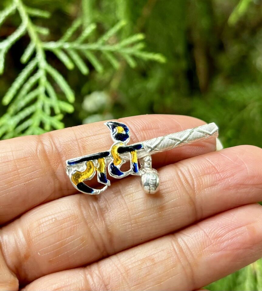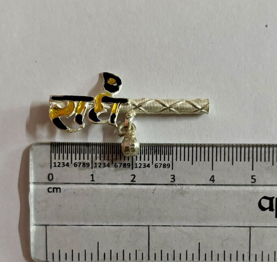 Handgefertigte Pure Silver Lord Krishna LADDU GOPAL Bansuriflöte RADHE 4 cm...