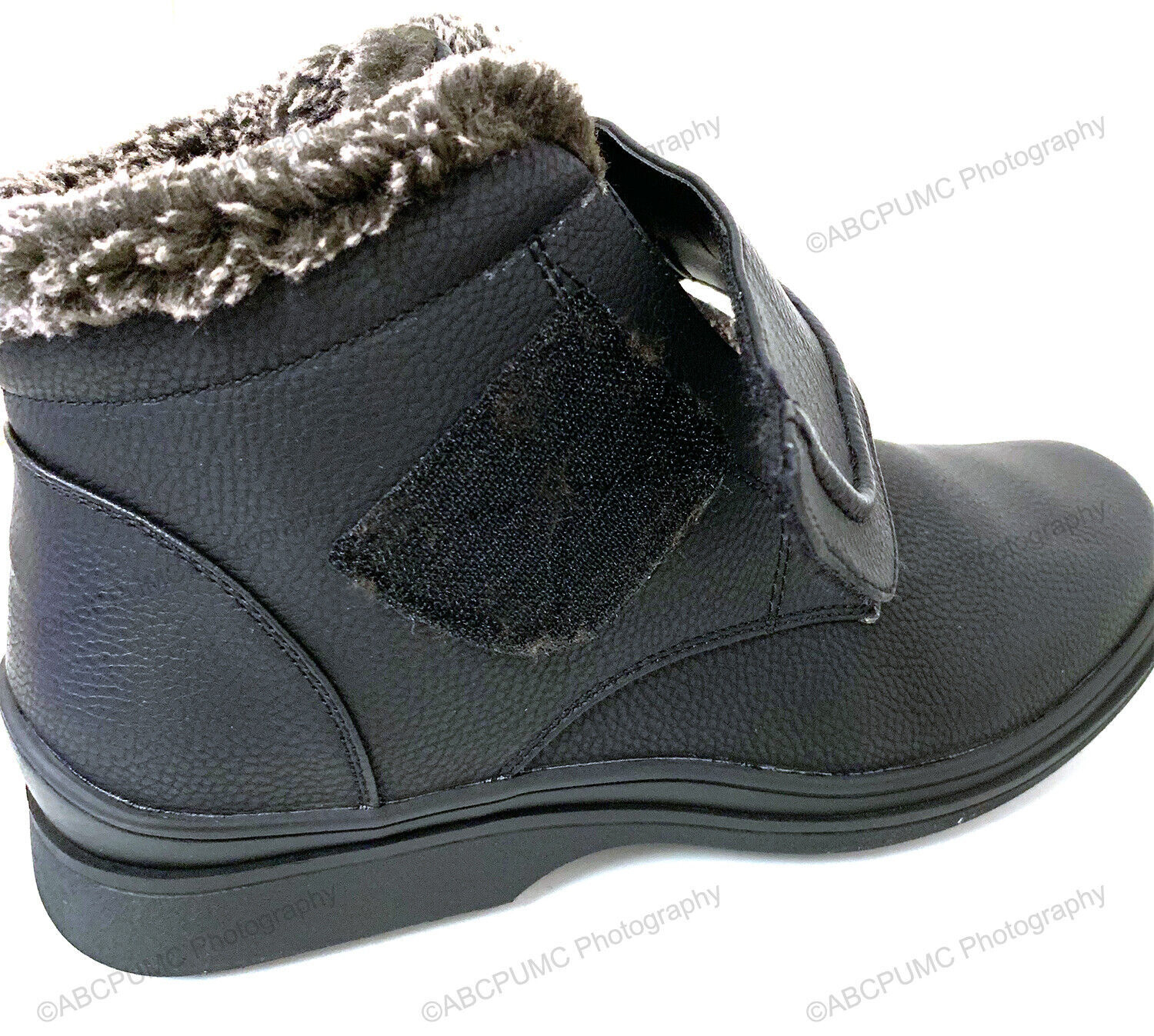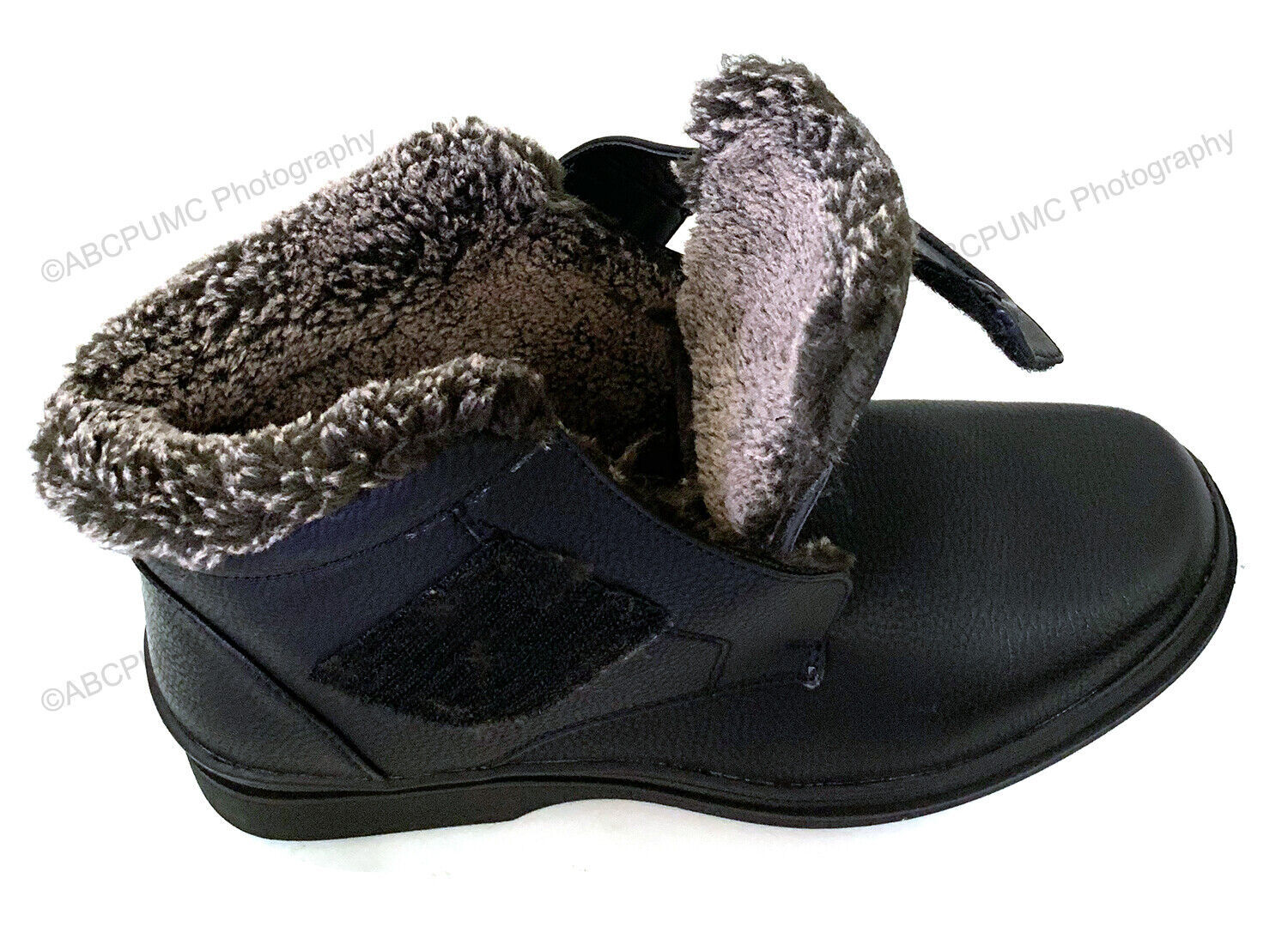 NIB Men's Winter Boots Black Fur Lined Hook and Loop Ankle Warm Snow Shoes Sizes