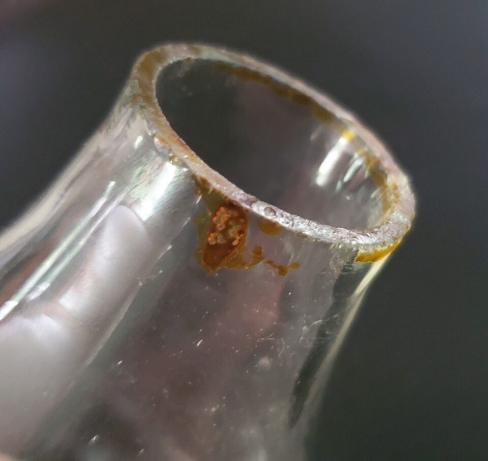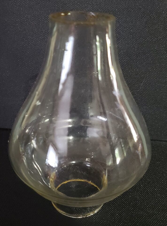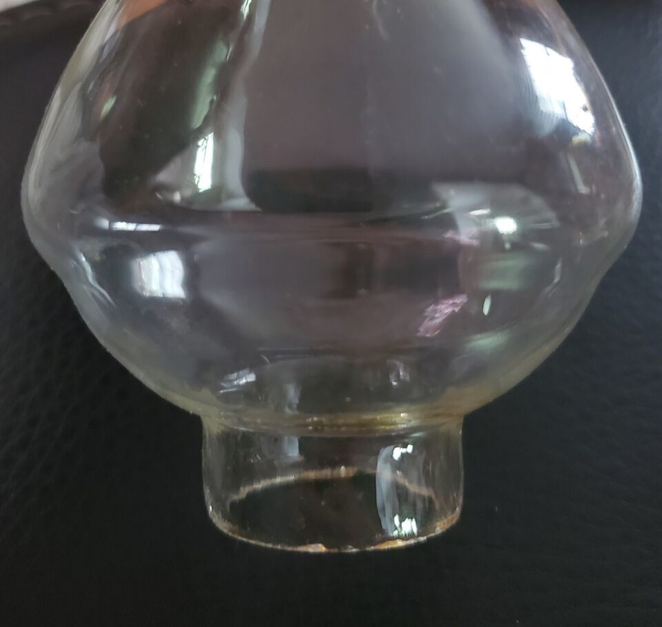 Clear glass Hurricane lamp shade that measures approx 4 1/4" tall. There are small chips along the fitter edges.