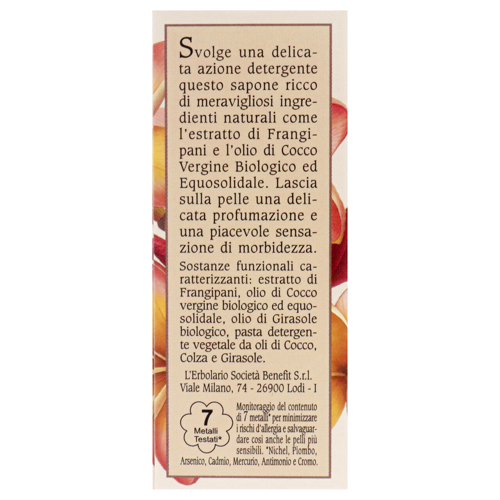 This soap rich in marvellous natural ingredients such as the extract of Frangipani and Organic and Fair Trade Virgin Coconut Oil provides a gentle cleansing action. Its creamy texture, rich in nourishing and emollient organic oils, leaves the skin gently perfumed and pleasantly soft.
