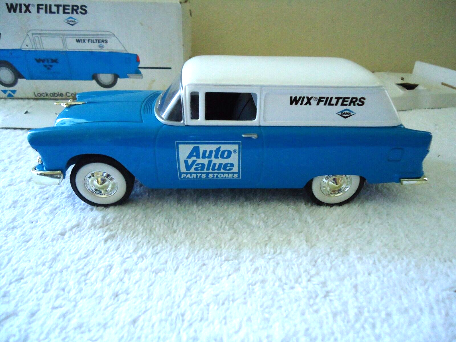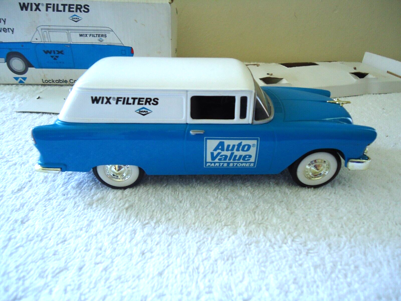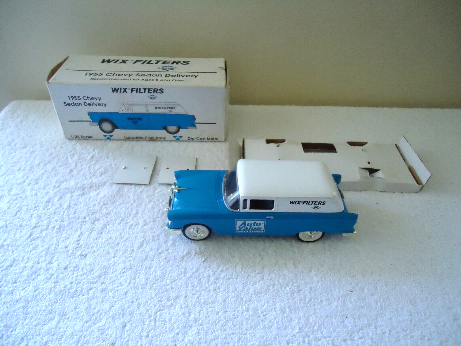 Here is a Wix Filters Promotional 1/25 Scale 1955 Chevy Delivery Sedan Lockable Coin Bank " Great Collectible Bank ".This is a must for any collector,or decorator wanting that vintage retro look.The pics do not do this item(s) justice.If you have any concerns or questions about this item(s) please ask before bidding / purchasing because this item(s) is being SOLD AS IS.Thank You.-(S PTOP)