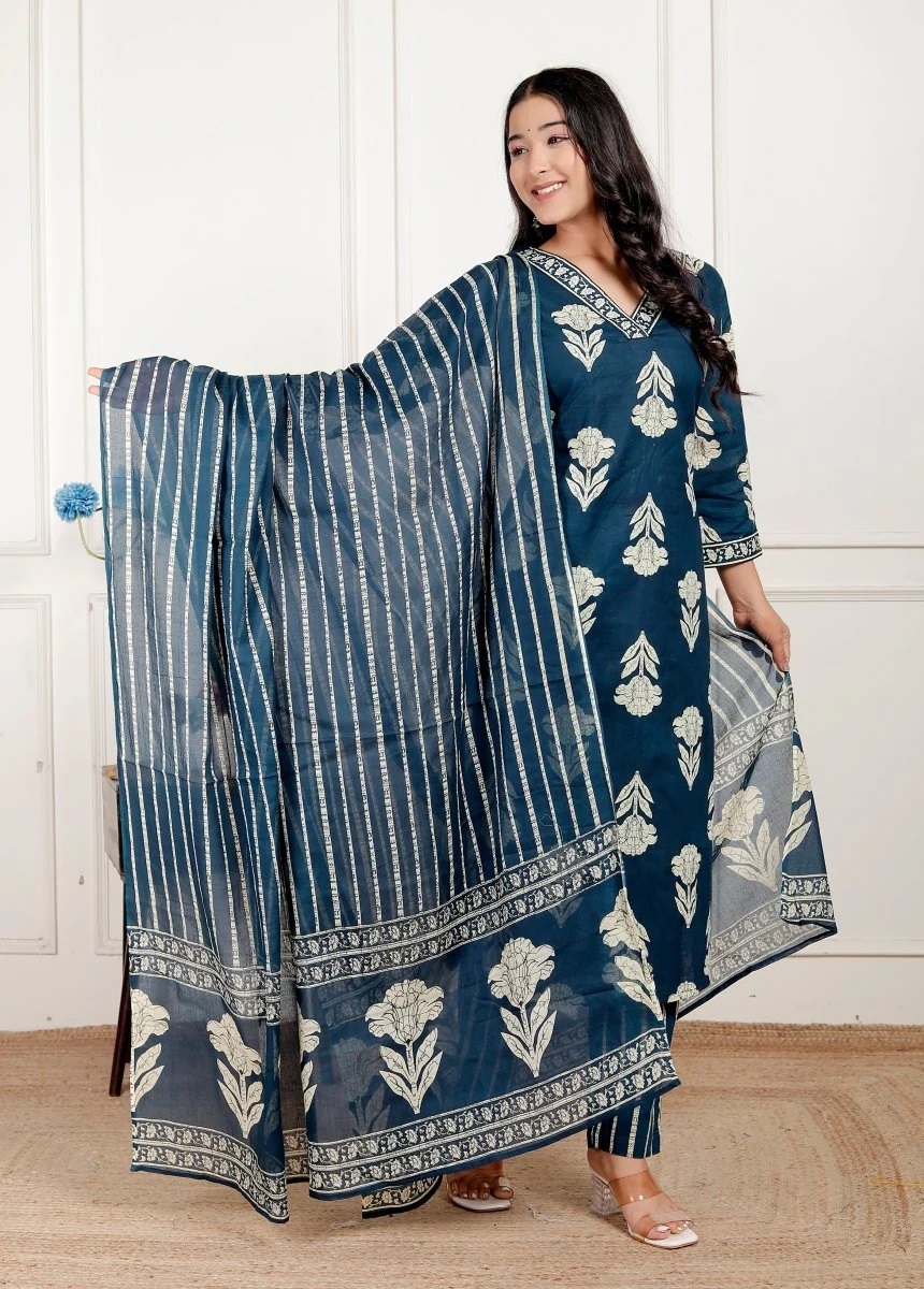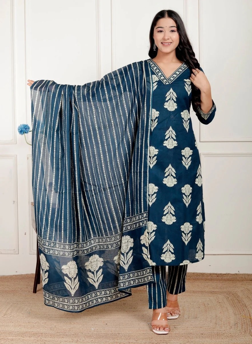 Contents: 1 pc Kurti, 1 pc Pant 1 pc Dupatta