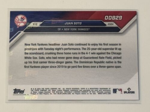 Juan Soto GOLD* BONUS 2024 MLB TOPPS NOW Card #ODB29 3 Home Run GAME NY Yankees*