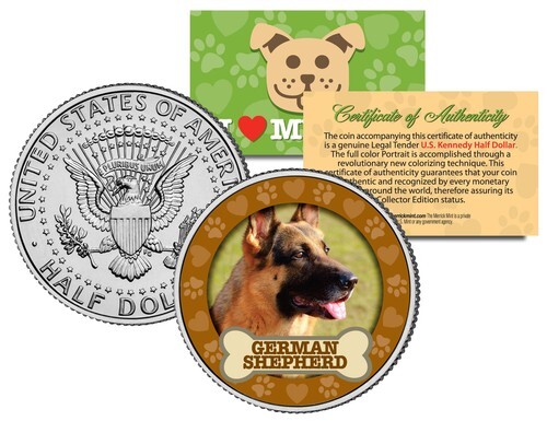 GERMAN SHEPHERD Dog JFK Kennedy Half Dollar US Colorized Coin