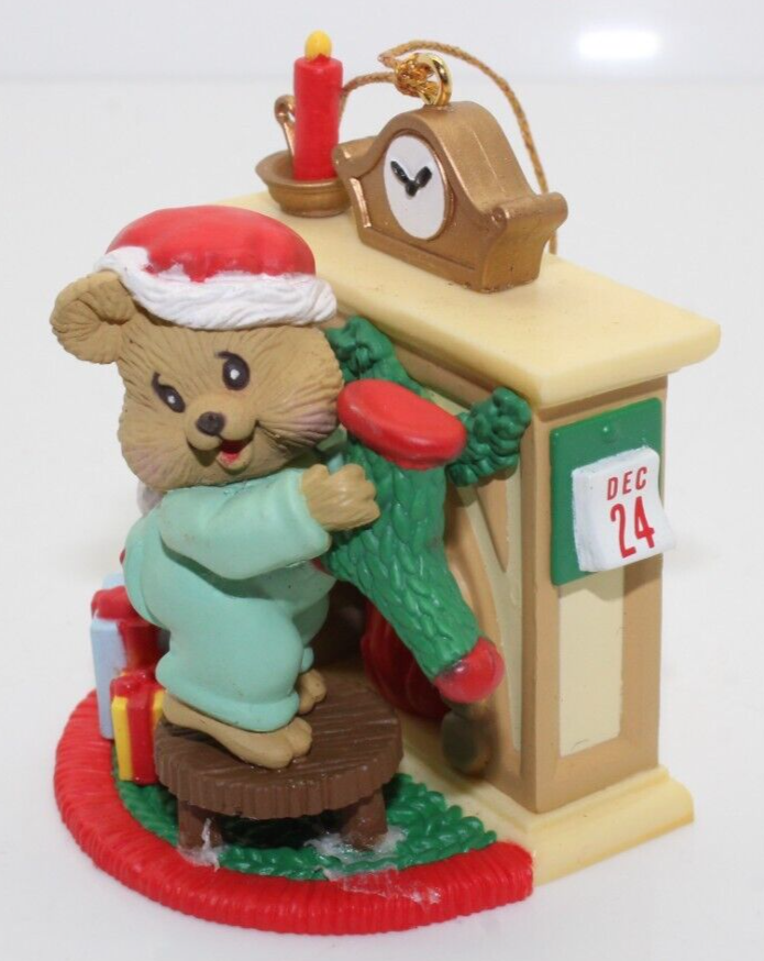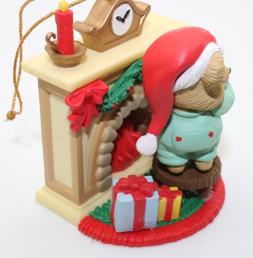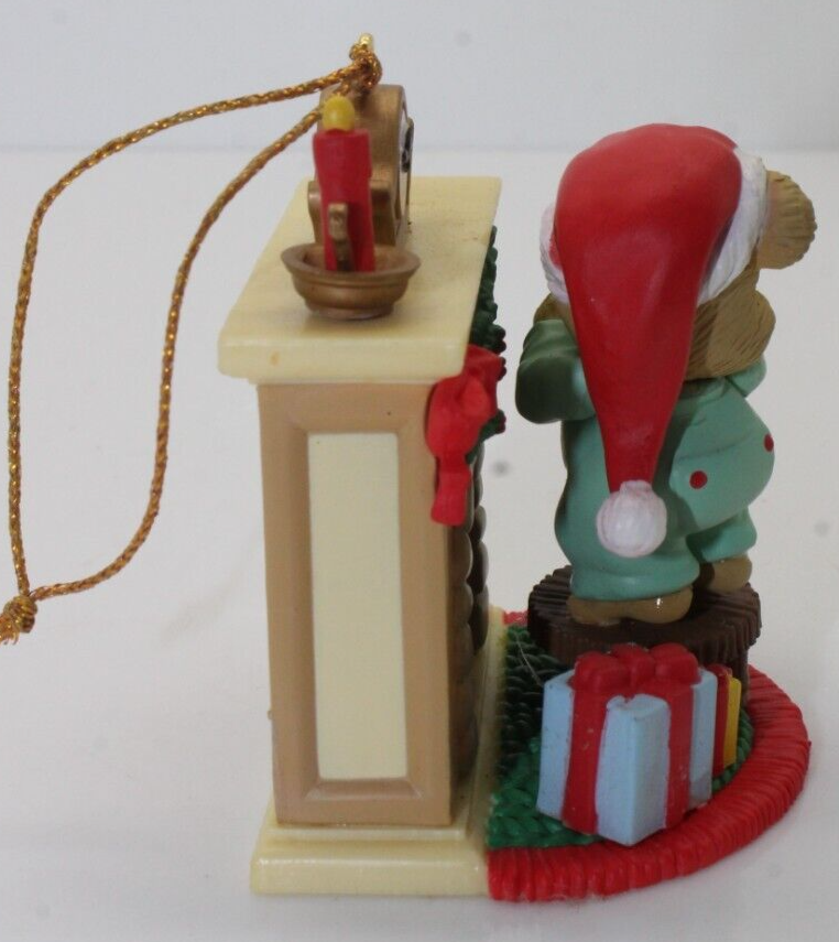 Vintage 1994 High Progress Xmas Ornament Bear, Stockings, Fireplace, Christmas