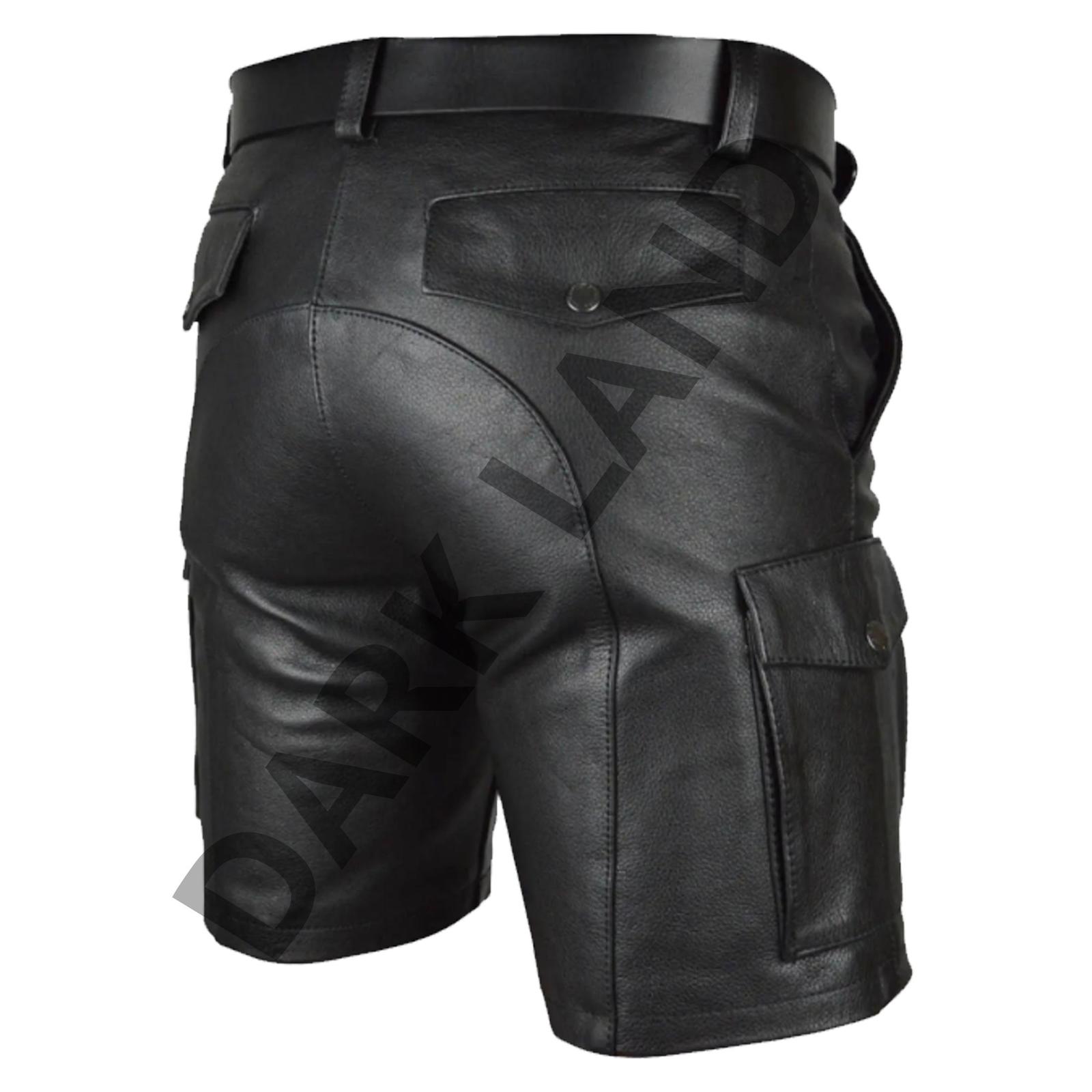 Step into confidence with our Men's Black Leather Shorts, crafted from premium genuine leather for the ultimate blend of style and practicality. These shorts feature a sleek design, complete with a real leather belt for a secure fit and functional cargo box pockets to keep your essentials within reach. Whether you're hitting the club, attending a party, or making a bold fashion statement, these shorts are designed for men who dare to be different.