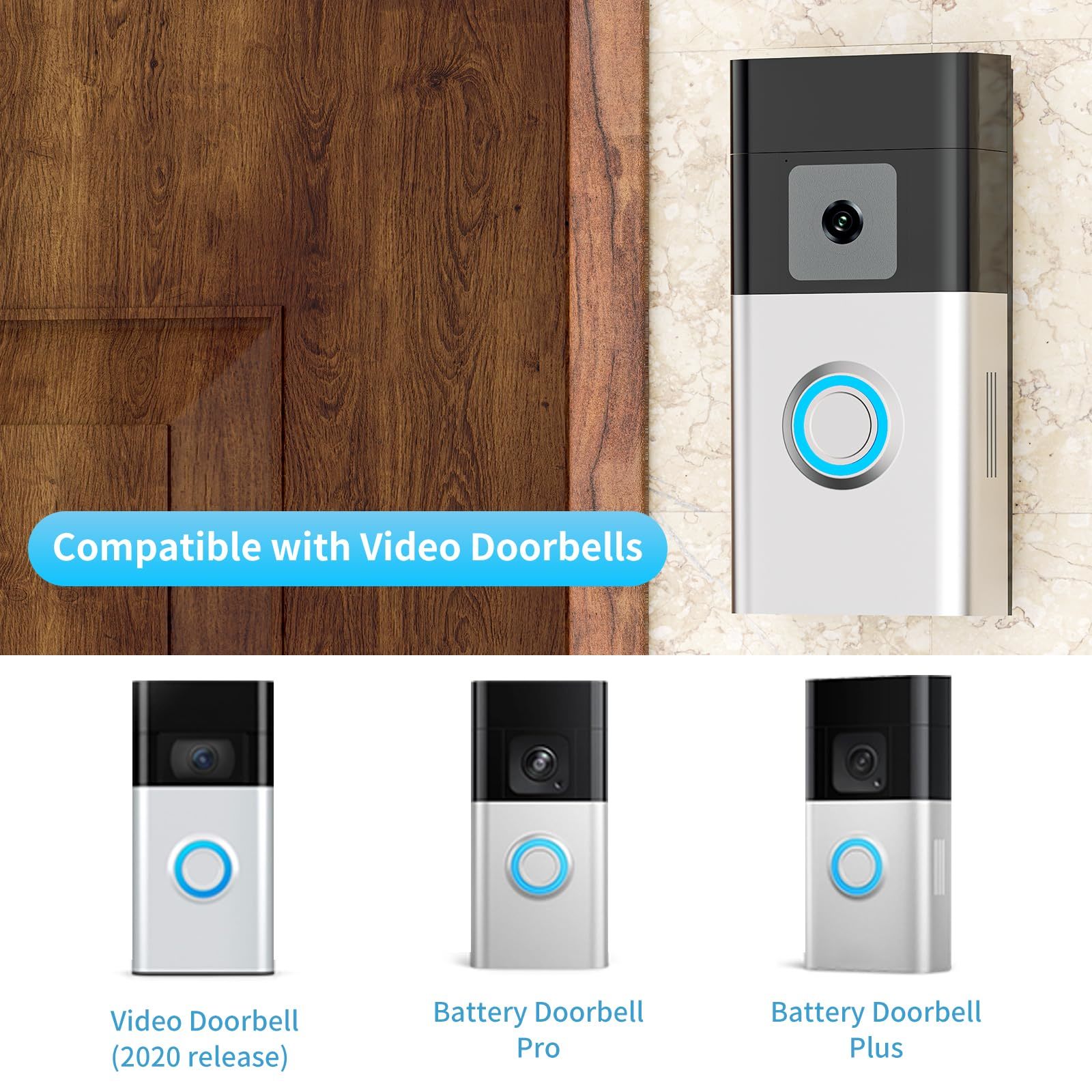 Compatible Models: Our adhesive doorbell mount is suitable for Battery Doorbell Plus/ Pro, R/ing Doorbell 1/ 2/ 3/ 3 Plus/ 4 /(2024 Release)/ (2020 Release). (Doorbell is not included in package).