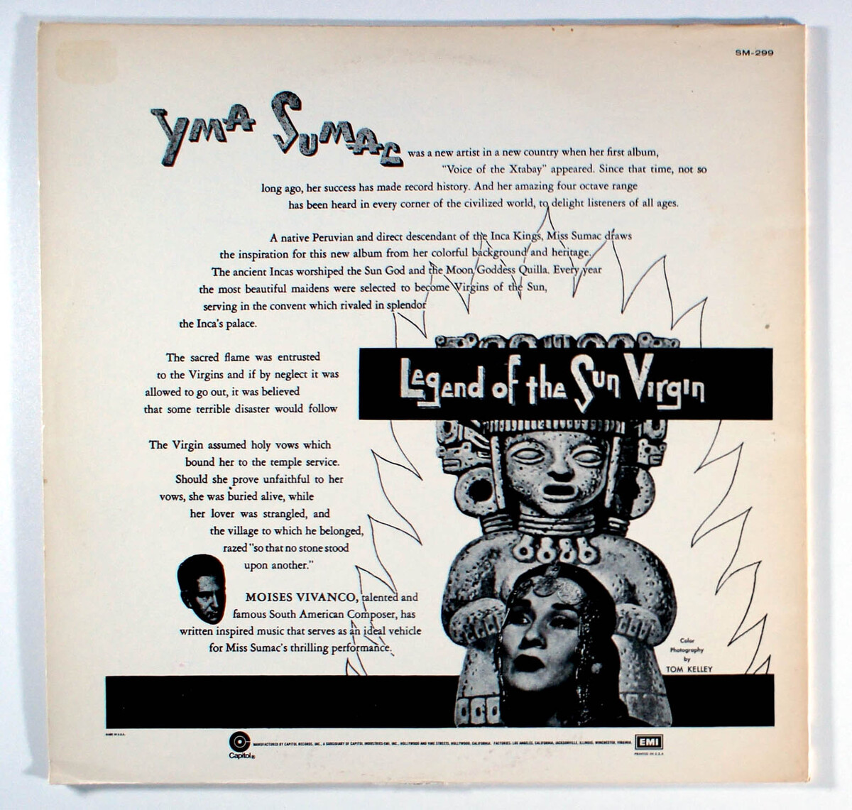 Legend of the Sun Virgin, by Yma Sumac, is a captivating exotica album that showcases her extraordinary vocal range and Peruvian heritage, performed to evoke an Incan ritual. The album features lush orchestrations led by Moiss Vivanco, blending semi-Latin instrumentation with Sumacs otherworldly vocals across 12 tracks, including Karibe Taki, Witallia!, and Suray Surita. Critics note its operatic delivery and thematic intensity. The album remains a landmark in exotica, celebrated for its unique sound and Sumacs vocal prowess.